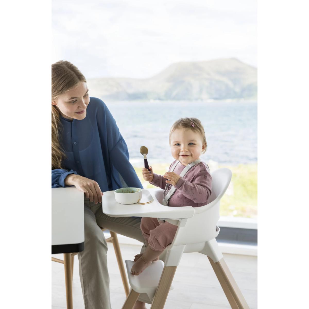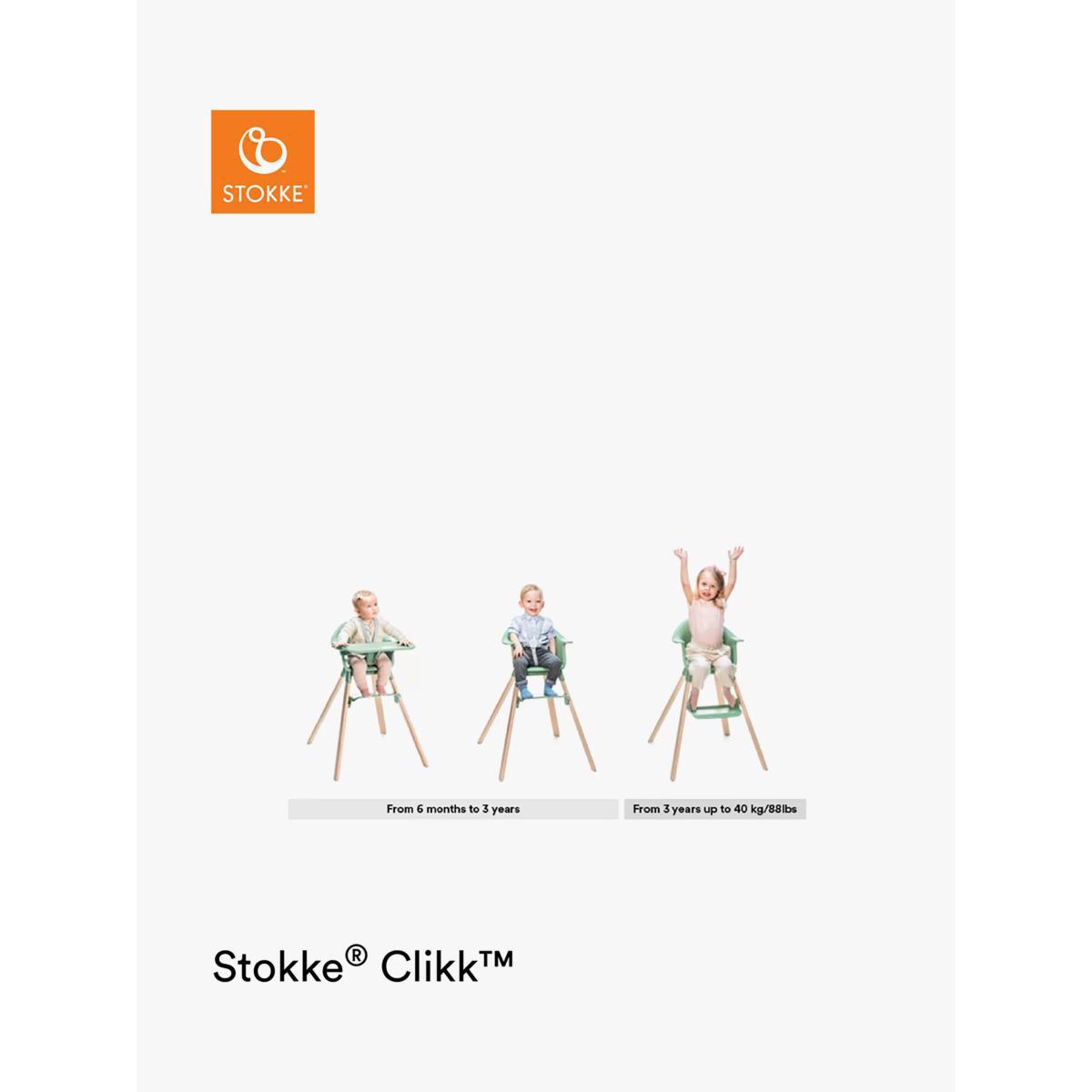 The Stokke® Clikk highchair has been developed to address all your needs for family mealtimes. Beautifully designed with smooth lines means you're ready for easier, cleaner and closer mealtimes in just "1-2-3 Clikk". Key features: All needed parts come included - high chair, tray & harness Tool-free assembly that’s quick and simple Lightweight and travel-friendly Easy to wipe clean with smooth surfaces from top to bottom Harness easy to remove for cleaning, machine washable Detachable and dishwasher safe tray Ergonomically designed for children from 6 months to 3 years Three con?gurations for optimal seating at each age Adjustable foot rest o?ers two positions The Stokke® Clikk™ highchair with tray and harness is intended for children able to sit up unaided and up to 3 years or a maximum weight of 15 kg/ 33lbs.