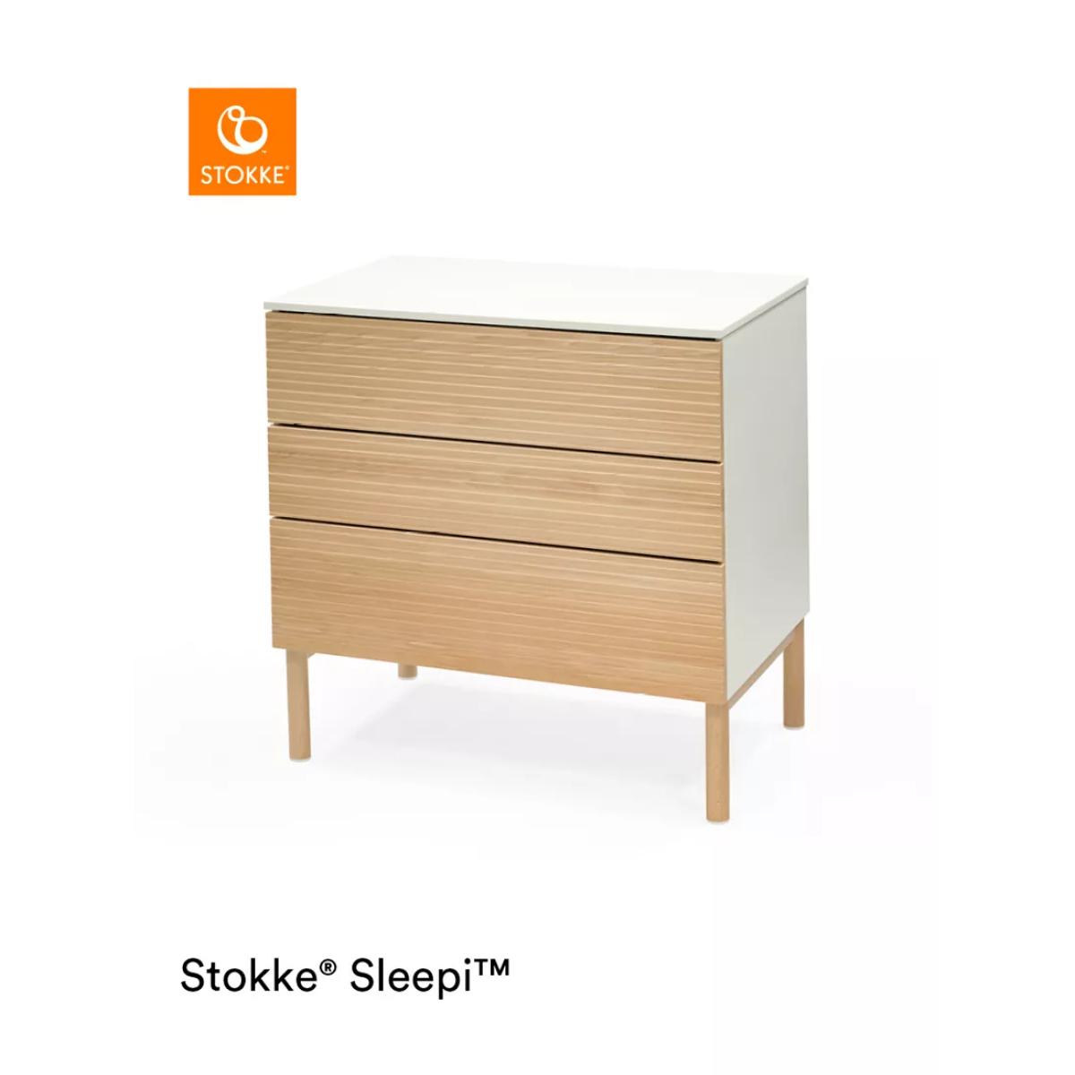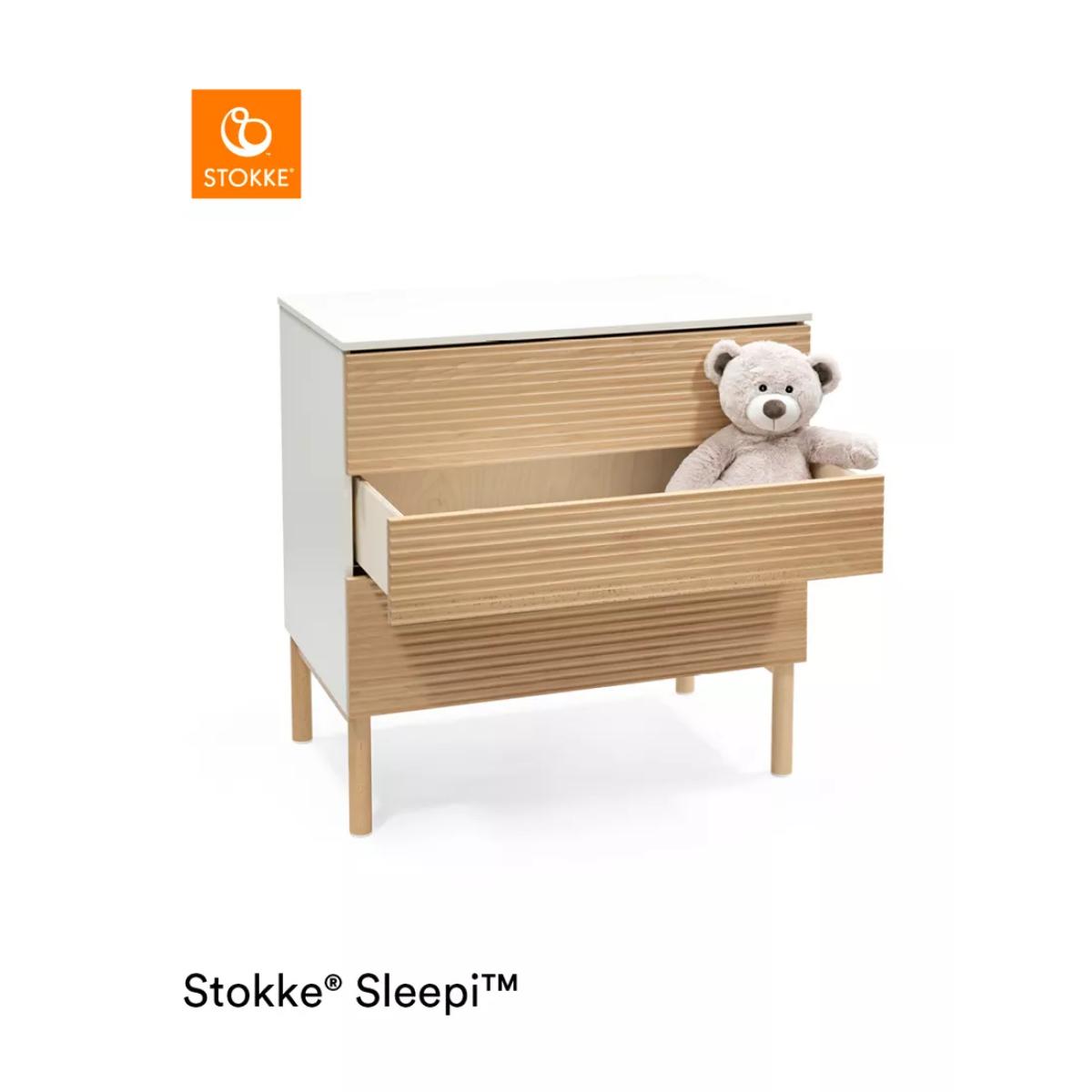 The spacious dresser with timeless design. The Stokke® Sleepi™ Dresser is the latest innovation and the perfect addition to the Stokke® Sleepi™ nursery concept. Taking a holistic approach, the design language is consistent with Stokke® Sleepi™ cribs. It has also been awarded the Red Dot Design Winner 2022. As versatile as it is beautiful, the Stokke® Sleepi™ Dresser features three spacious, soft-closing drawers that open and close with a gentle push. This gives parents loads of storage and easy access to their children's clothes, toys and treasures. Made with clean, Scandinavian-inspired lines, solid wooden legs and a tactile front surface, it combines form and function with quality and durability. The result is a classic piece of furniture that works in a variety of interiors that will last for years. Key Features: Part of the Stokke® Sleepi™ nursery collection Timeless Scandinavian design Red Dot Design Winner 2022 Spacious, soft-closing drawers that open and close with a gentle push Made from durable solid beech wood and formaldehyde reduced MDF Tested with the highest standards on stability and restricted substances Equipped with a wall securing kit