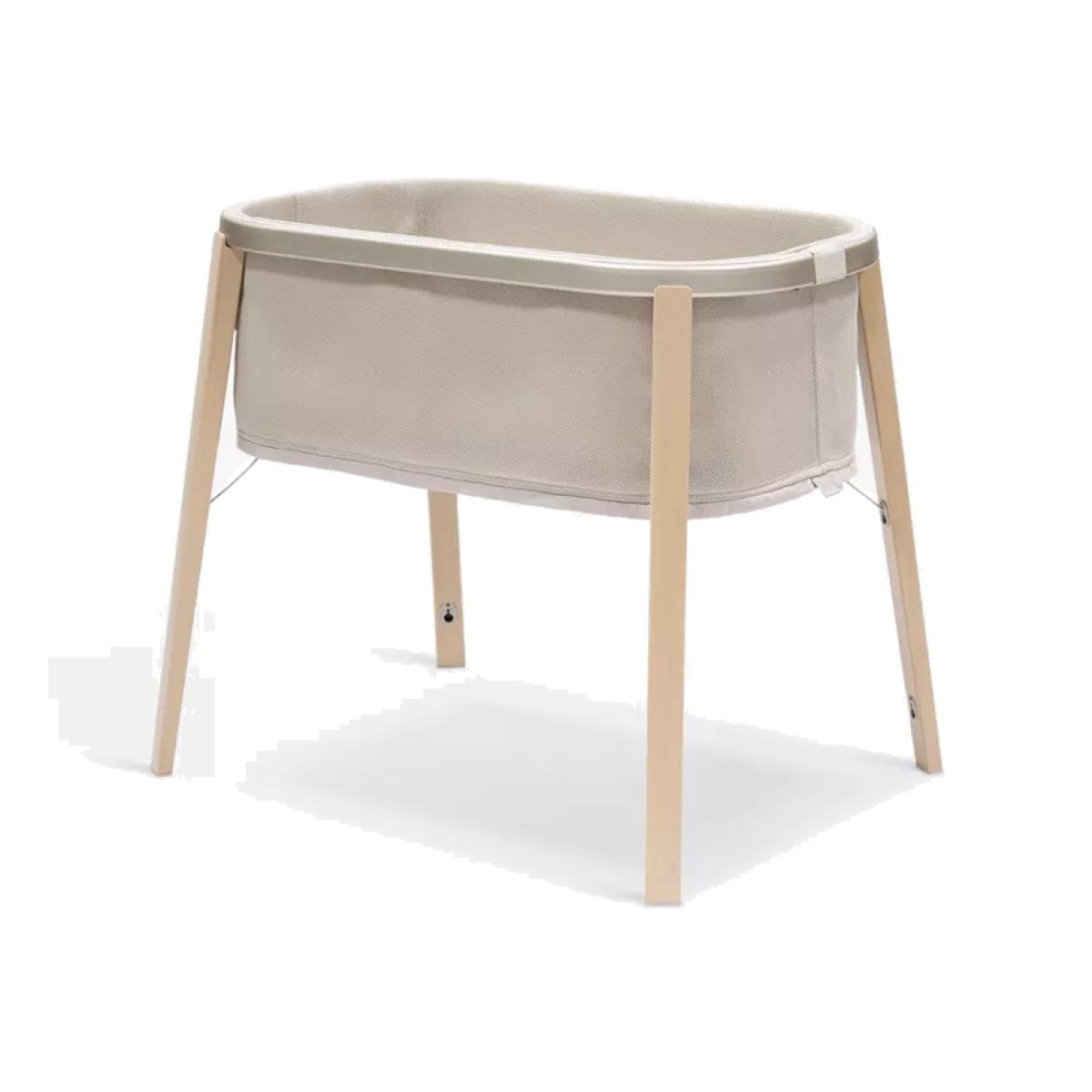 Stokke has reinvented the bassinet with the new Stokke® Snoozi™. Airy and light with a soft oval shape, Stokke® Snoozi™ cradles your baby in comfort and can be used from birth to bring your baby near for bonding. The firm, comfortable mattress and breathable fabrics make it the perfect place for your newborn to rest, sleep, and nap… in every room of your home. Best of all, it even adjusts as your little one grows. Use the high newborn position for the first 6 months, then simply lower the mattress when your baby can pull themselves up and use it up until 9 months (15kg). Designed with premium materials including FSC®-certified wooden legs and a strong aluminium frame, Stokke® Snoozi™ also features main fabrics that are made of breathable 3D mesh materials that are gentle to the touch and machine washable. For on-the-go families, the Stokke® Snoozi™ is also lightweight and assembles tool-free in only a few minutes, so it goes the extra mile and travels with you! Just use the optional travel and storage bag to pack it up for outings or holiday adventures. Safety Information: Stop using the upper position as soon as the child can sit or kneel or pull itself up. Do not use this product without reading the instructions for use first. Read these instructions carefully and follow them in detail to ensure that the safety features of Stokke® Snoozi™ is not compromised. Keep the instructions for later use.