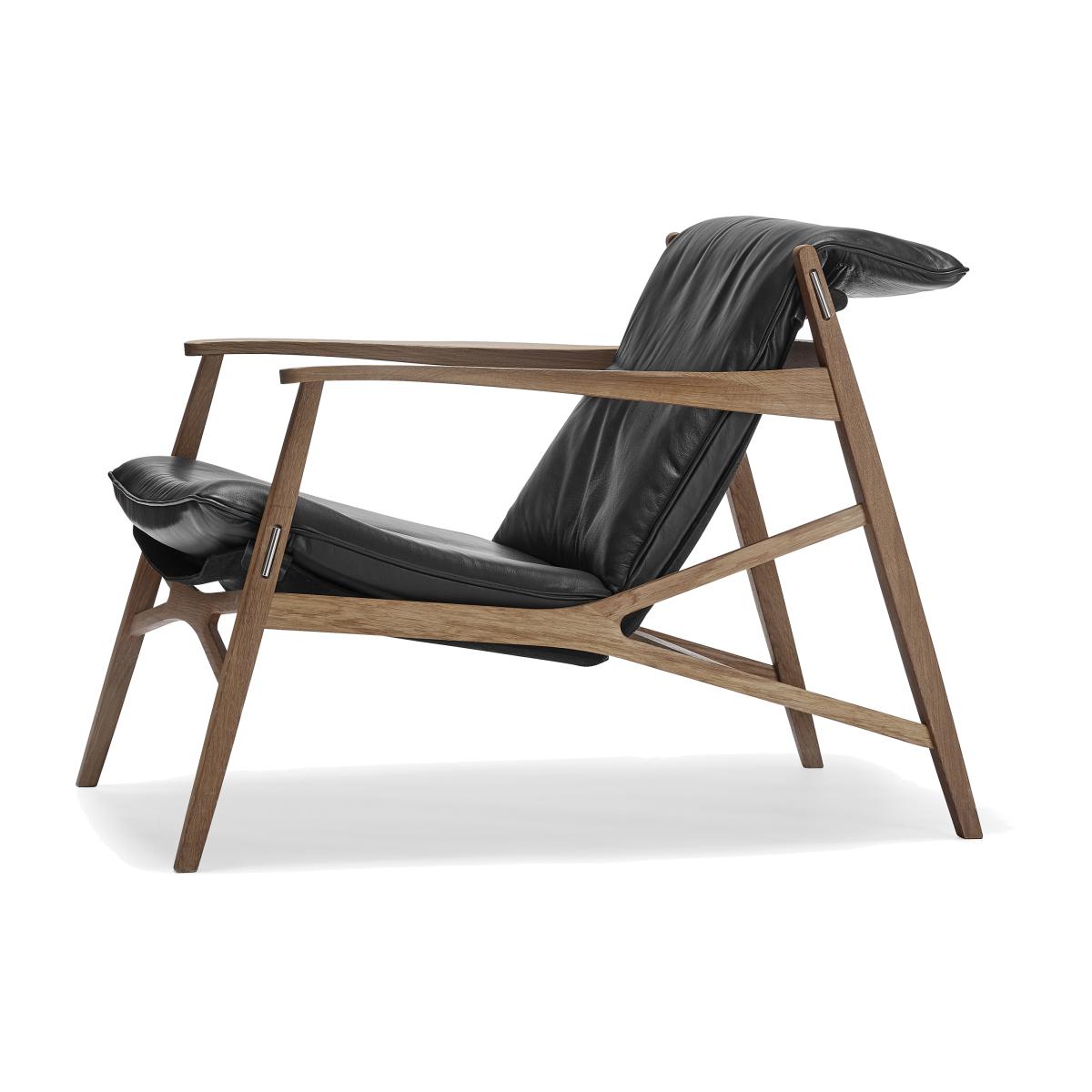 Stolab Link arm chair Black leather-natural oiled oak-black canvas