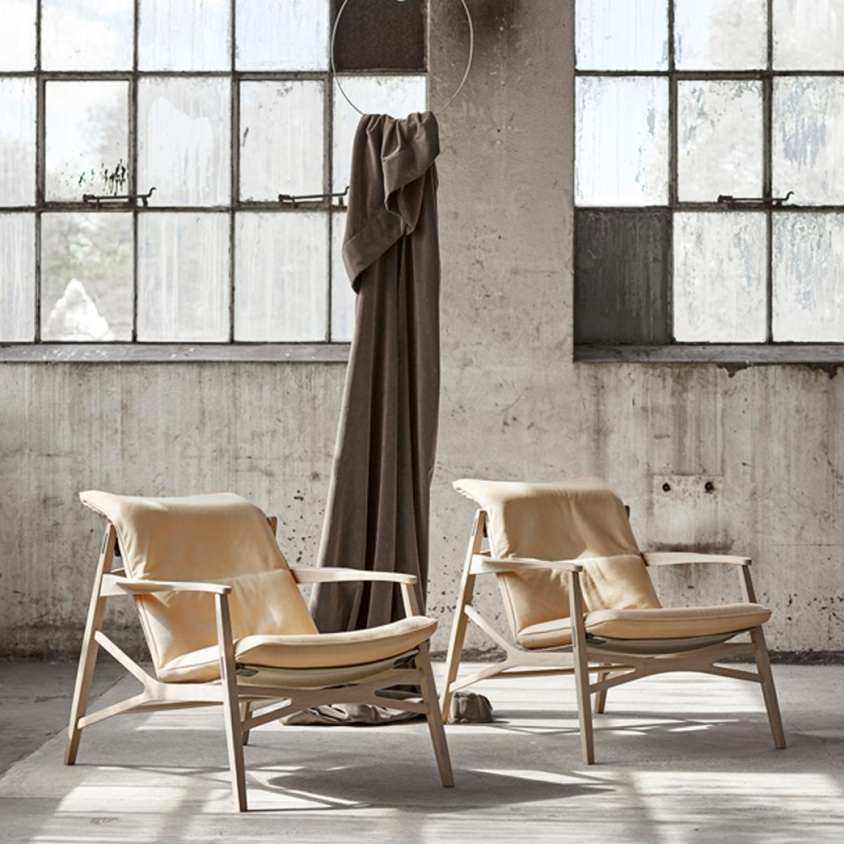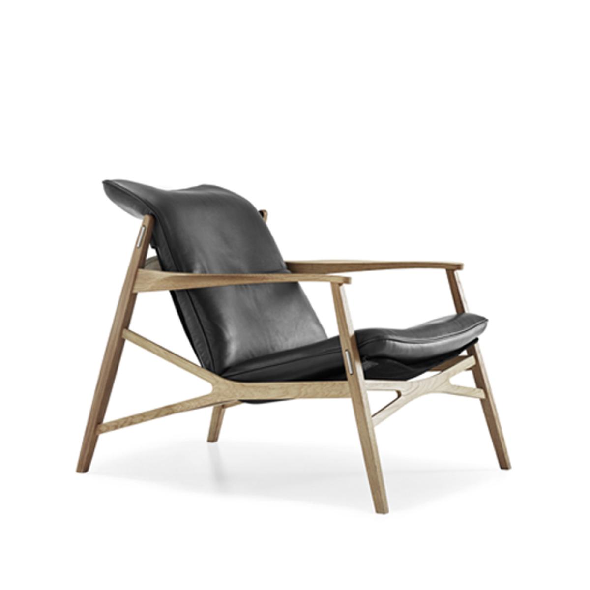 Stolab Link arm chair Tärnsjö leather dark brown. natural oiled oak. black canvas