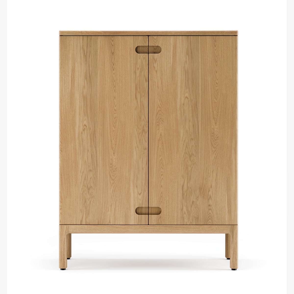 I love this piece for its clean, minimalist aesthetic and warm oak finish, making it incredibly versatile for a variety of interiors. It works especially well in Scandi or contemporary spaces where natural textures and simple forms are key. The high oak with oil enhances the wood’s natural grain, adding warmth and subtle character. As a tip, pairing it with soft textiles or modern metal accents can create a balanced, stylish look. Its practical design makes it ideal for storage in living rooms, bedrooms, or even hallways, and its elevated stance adds a touch of softness while keeping it functional and easy to clean underneath.
