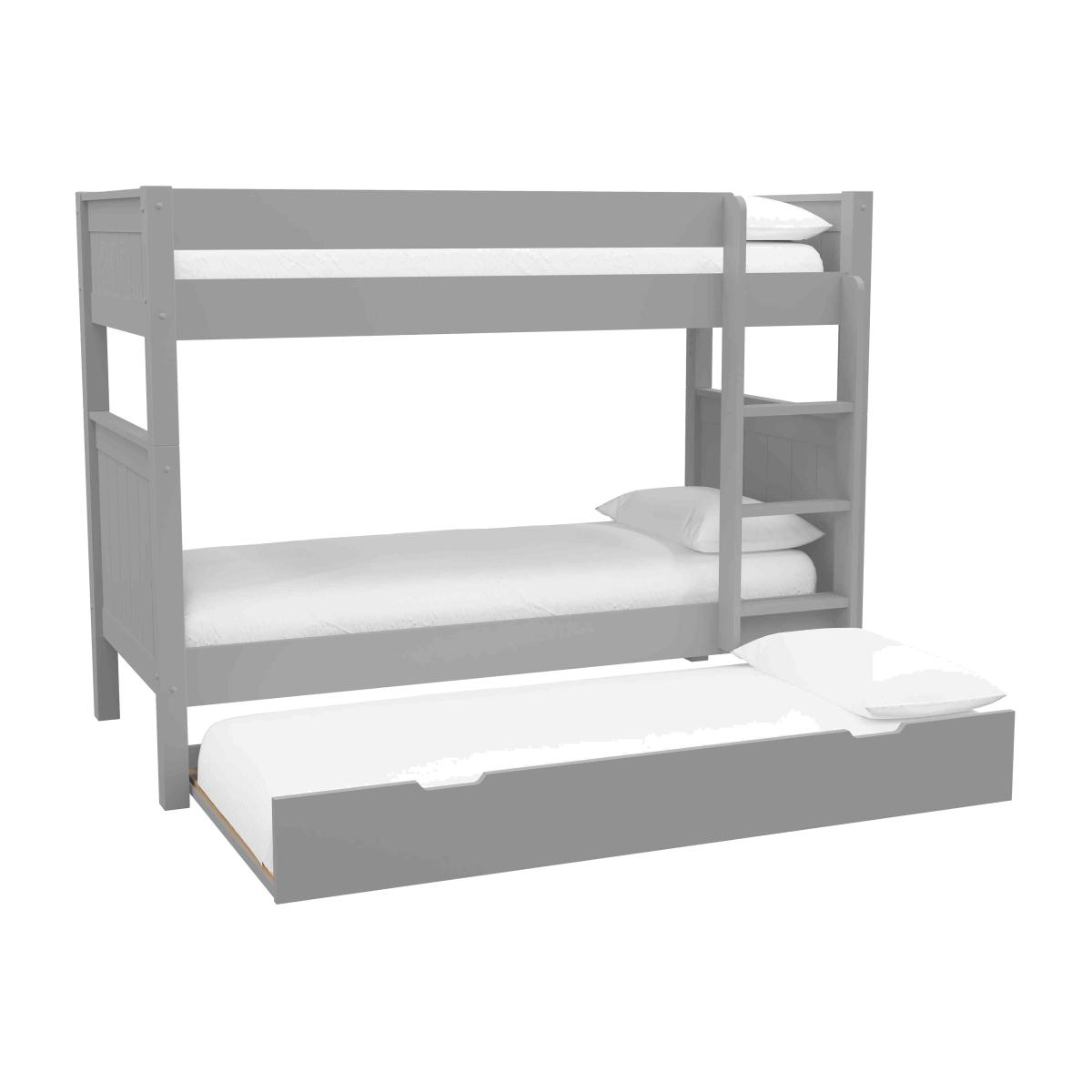 Your kids will love the Chase range from Stompa. It perfectly blends sturdy and functional with fun and exciting, plus it’s rigorously tested against all relevant safety standards, so you’ll have complete peace of mind. With its attractive tongue and groove design and clean, neutral style, the Chase range will easily fit into any child’s room and is suitable from the age of 6 through to teen years, depending on your child’s individual development. All Stompa products are top-quality, so you can be confident it will last for years. There’s plenty of sleeping space with this fantastic value bunk bed from Stompa thanks to the additional trundle bed. Why you'll love it Comfy and space-saving, this bunk bed’s a win-win. Available with either a white or grey lacquered finish. Can be assembled as two single beds or a bunk bed. Roll out trundle bed gives you a speedy sleepover solution Flat steps on ladder for comfort and safety. Attractive tongue and groove effect on headboard and footboard. Constructed with a solid pine frame. Rigorously tested against all relevant safety standards. Quality furniture at a great value price. Part of the Stompa Chase range at Furniture Village. What you need to know This bed takes 2 standard sized mattresses 90x190 cm with a maximum depth of 155 mm Trundle bed takes 1 standard single 90cm x 190cm mattress. We offer a range of Stompa mattresses to fit online. Heavy duty construction. Durable lacquered finish. From Stompa, a name you can trust.