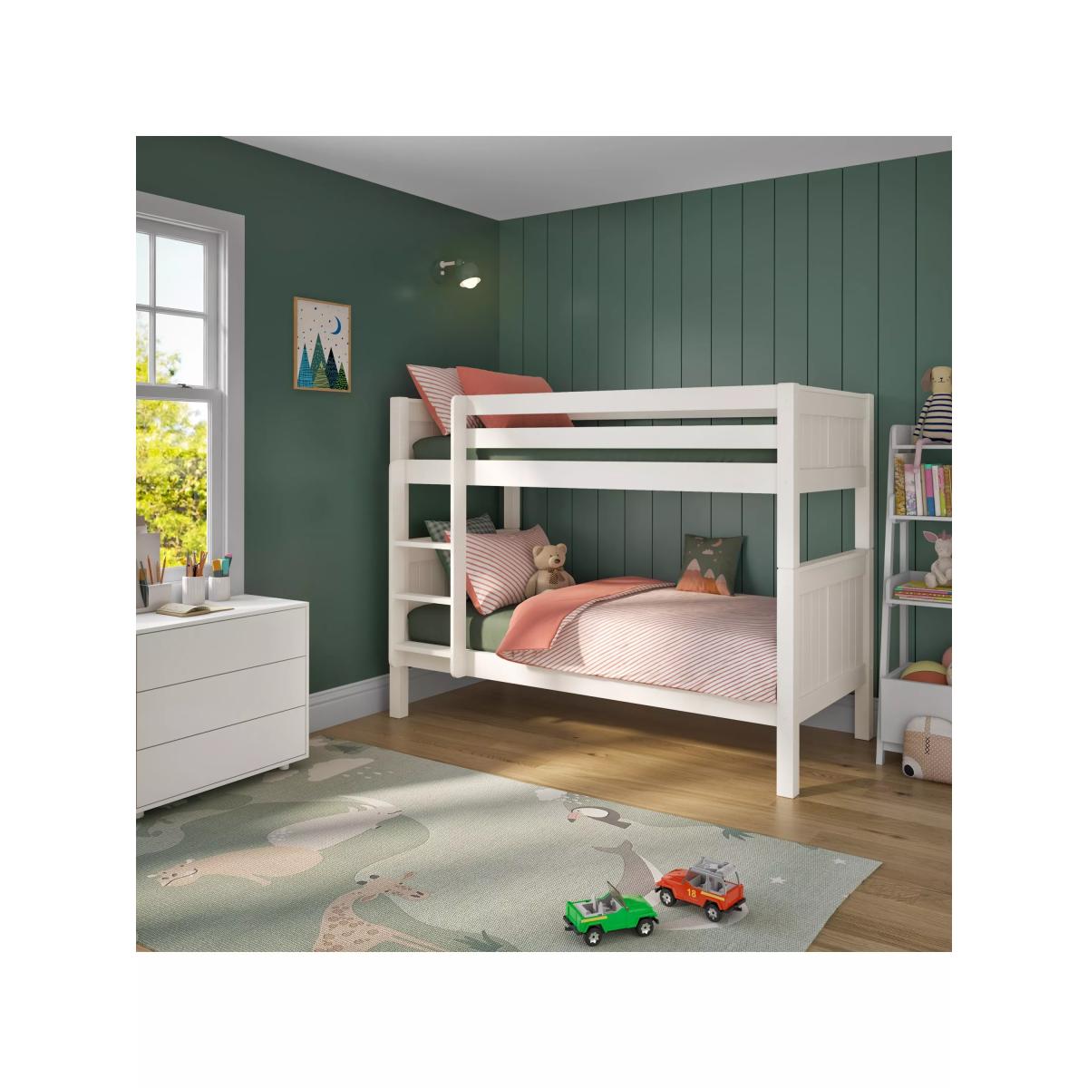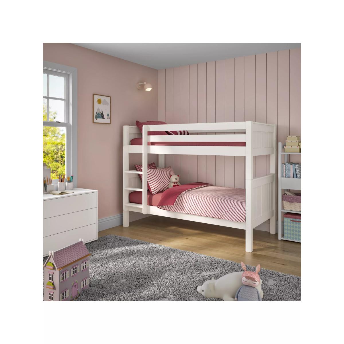 Perfect for shared bedrooms, or maximizing available space, this bunk bed provides two comfortable sleeping areas without compromising floor space. A timeless and functional choice for shared spaces, it's crafted with quality and care, showcasing an updated design with two enhanced safety rails, providing extra security and allowing for a maximum mattress depth of 20cm on the top bunk. Key Features: Classic Design:this bunk bed boasts a timeless design that blends seamlessly with any interior style, ensuring longevity and versatility. Sturdy Construction: crafted from durable materials, this bunk bed is built to withstand the demands of active kids while maintaining its structural integrity. Enhanced Safety Rails: updated design features two enhanced safety rails, offering additional security for a safe and sound sleeping environment. FSC Certified: made from FSC-certified and managed forest materials, emphasising Stompa's commitment to sustainable and responsible sourcing. Mattress Size: takes two UK standard single mattresses (190cm x 90cm), perfectly fitting the bunk bed's design and functionality. Versatile Configuration: this bunk bed offers flexibility in configuration, allowing it to be assembled as two separate single beds if needed, adapting to changing needs.