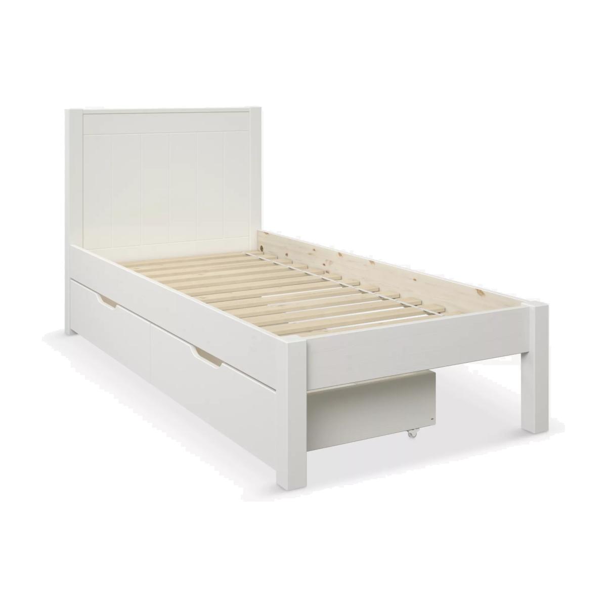 From Stompa comes this charming single bed with an attractive tongue and groove effect headboard. A great bed for children of all ages and adults alike, it features an increased headboard height for greater comfort whilst reading in bed. A very versatile bed it is also ideal as a guest bed in a spare bedroom. The bed is traditionally crafted from solid pine with an MDF headboard ensuring sturdy, long-lasting quality. This bed comes with a pair of storage drawers that fit under the bed giving you extra space.