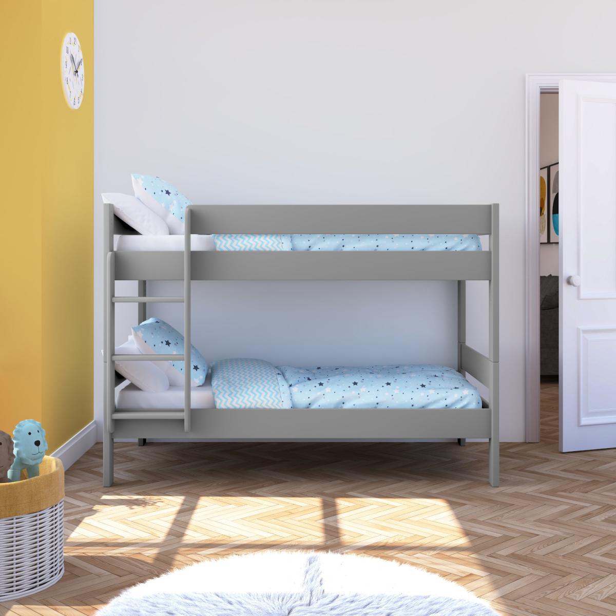 I’m really taken with this grey wooden bunk for its clean lines and compact footprint - it’s ideal where floor space is in short supply. The muted hue means it sits effortlessly in a Scandi-inspired scheme or a more contemporary, monochrome palette, and you can soften the look with pastel cushions and a throw at the foot of each bed. Styling-wise, I’d keep surrounding furniture low-profile - think wall-mounted shelves instead of a tall bookcase - and add under-bed storage boxes to make the most of that spare space. A small wall lamp or clip-on reading light for each bunk keeps bedside tables to a minimum while ensuring practical, task-lighting for late-night stories.