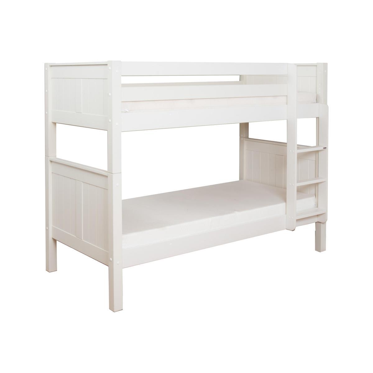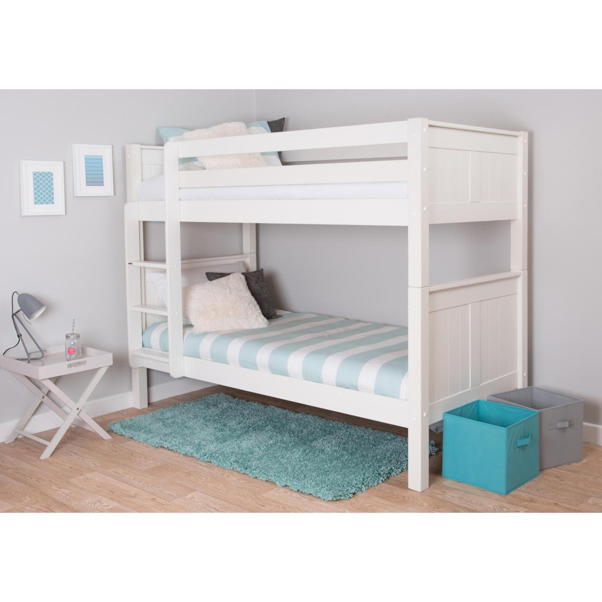 Sturdy, space-saving set of bunk beds from Stompa. With a solid pine frame and slatted bed bases. The bunks can be separated into separate single beds when your children grow into teenagers. What you’ll love. Designed to last into the teenage years. Bunks can become two single beds. Fresh, hardwearing off-white painted finish. Attractive tongue and groove style end panels. Strong, solid pine frame and chunky legs. Sturdy ladder at one side. Meets British safety standards for children’s furniture. Fantastic value for money. What you need to know. Fits two 190cm long single mattresses, not included. 190cm Stompa mattresses available to buy separately. Heavy duty construction. Lacquered finish. Mattresses supported by 14 sturdy, springy wooden slats. From Stompa, a name you can trust. In response to the recent government protocols, this Stompa product requires self-assembly and will be delivered to your front door.