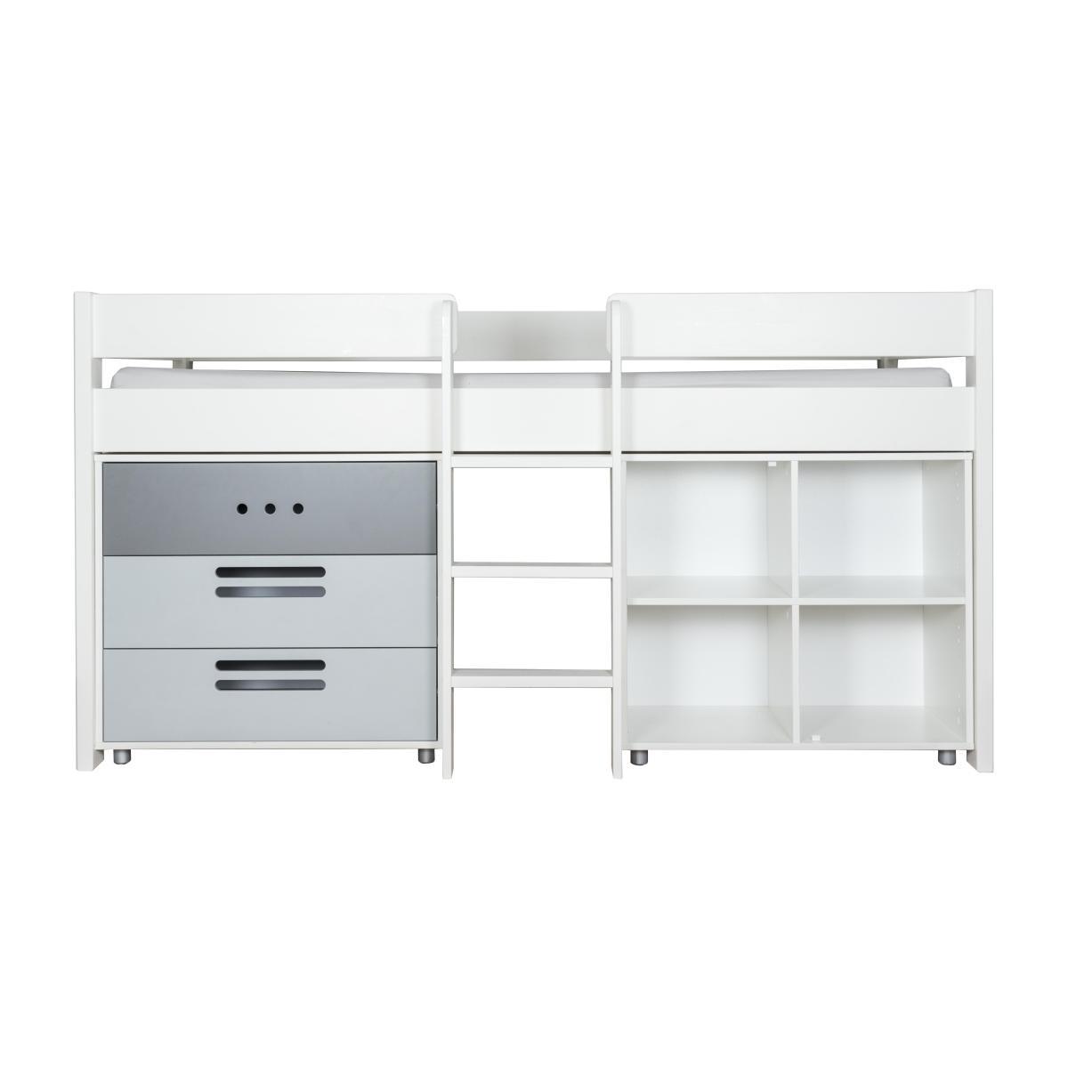 If children designed bedroom furniture, they’d surely come up with the Stompa Nexus collection. This high-quality modular range offers stylish and well-crafted places to sleep, study and store. Grownups will love the compact, space-saving solutions like pull-out desks and under bed chests of drawers, the Scandi-cool white and grey colour palette, and the hypoallergenic mattresses. Kids will love the huge choice – mid-sleeper, high-sleeper or bunk bed? – as well as the integrated shelves and storage cubes tailor-made for all their favourite things. Featuring Furniture Village-exclusive door colours, the Stompa Nexus range is cleverly engineered, solidly constructed and rigorously safety-tested. Designed with kids and their parents in mind, the Stompa Nexus mid-sleeper with storage cube and 3 drawer chest combines great storage with space-saving functionality and cool contemporary style. Featuring a solid pine mid-sleeper bed with a slatted base and central ladder, this modular unit has a stylish symmetrical look. The storage cube and chest of drawers fit neatly under the bed leaving plenty of floor space to play. Finished in white, this bedroom piece has a cool, Scandi-style vibe that brightens any bedroom and is stylish enough to transition easily from kid room to teen space. Two-tone grey drawer fronts are exclusive to Furniture Village and feature geometric finger pulls. Extremely well-crafted, the Stompa Nexus mid-sleeper with storage cube and 3 drawer chest and is part of the Stompa Nexus range of modular bedroom furniture which includes high-sleepers and bunks. Mattress sold separately. Fits 90cm x 200cm Mattress Only.