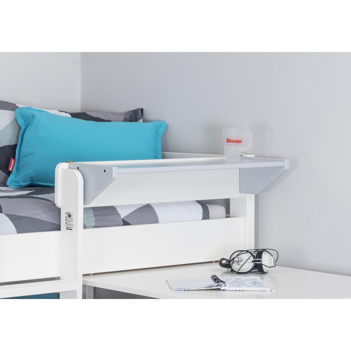 If children designed bedroom furniture, they’d surely come up with the Stompa Nexus collection. This high-quality modular range offers stylish and well-crafted places to sleep, study and store. Grownups will love the compact, space-saving solutions like pull-out desks and under bed chests of drawers, the Scandi-cool white and grey colour palette, and the hypoallergenic mattresses. Kids will love the huge choice – mid-sleeper, high-sleeper or bunk bed? – as well as the integrated shelves and storage cubes tailor-made for all their favourite things. Featuring Furniture Village-exclusive door colours, the Stompa Nexus range is cleverly engineered, solidly constructed and rigorously safety-tested. Perfect for a night time glass of water, the Stompa Nexus wide clip-on shelf in white or grey neatly fixes to the upper edge of a Stompa mid-sleeper, high-sleeper or bunk bed. Constructed from solid pine, it’s finished in white and is broad enough to support a book or two as well. Part of the ergonomically designed Stompa Nexus range of modular bedroom furniture, the Stompa Nexus wide clip-on shelf is available in white or grey. The range includes storage cubes, wardrobes and a chest of drawers, and high-sleepers and mid-sleepers come that with integrated L-shaped desks.