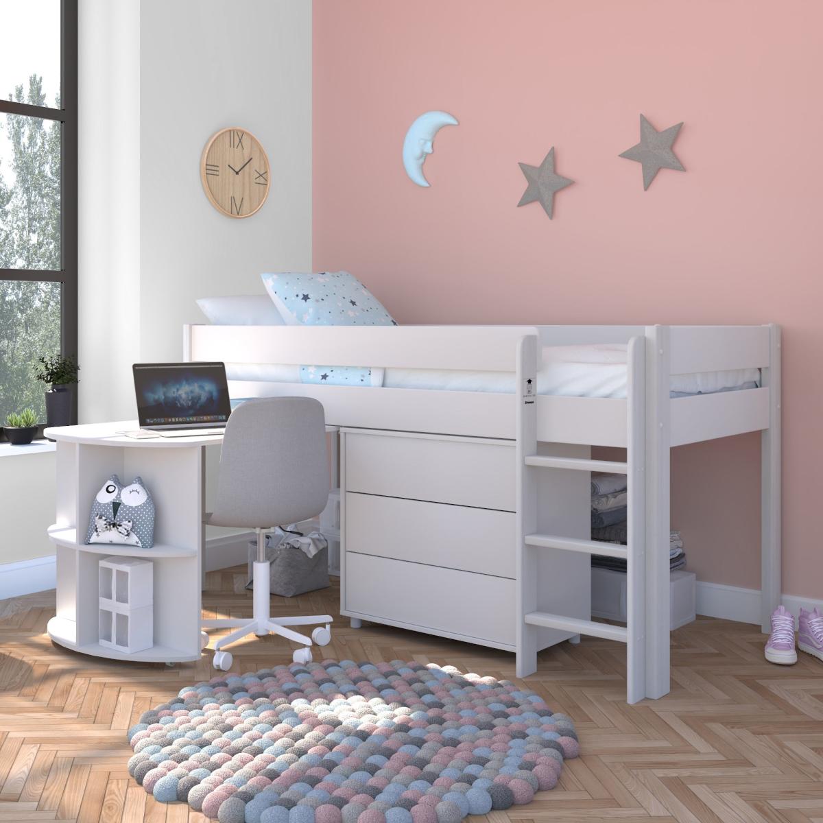 Stompa Uno Midsleeper With Pull Out Desk and Chest of Drawers, Pine White