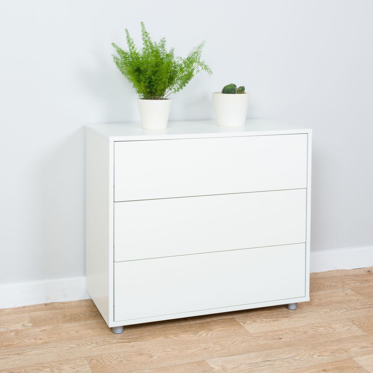 Clean, stylish and practical, this chest of drawers offers ample space to store clothes and accessories. Each of the three drawers features smooth running metal runners and a sleek and discreet push-to-open function. The chest then sits on attractive metal-tone feet. Made from durable MDF and treated with a smoothlacquer finish, this versatile freestanding piece slots effortlessly beneath either the Stompa Uno S mid-sleeper or high-sleeper bed, helping you to make the most of even the smallest of rooms. Stompa has been manufacturing safe furniture for active children for over half a century. Their furniture is functional and competitively priced aiming to fulfill all your child`s needs. Whether it`s a place to sleep, play, do homework or use their computer, Stompa provide storage and seating solutions that easily convert to an extra bed for sleepovers as well as a range of coordinating accessories. Our children's furniture ranges pass all British Standards safety and quality. We go beyond the legal requirements when we design our furniture, so that you and your child can both sleep soundly. Please note: not all our ranges are on display in our shops.