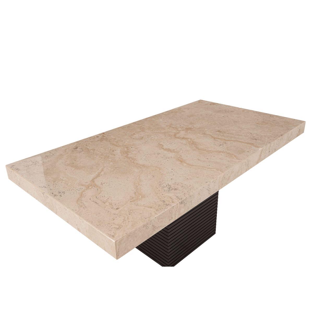 Talk about high-end style. We love this solid marble topped dining table with high-backed dining chairs. Phone to create your own bespoke finish and look. Why you’ll love it. Each luxurious marble and wood dining set is one of a kind. Handmade to order in Italy. Solid marble or travertine stone table top, no veneers. Stylishly grooved dark wenge wood pedestal base. The dining chairs have tall backs with linear stitching detailing. Choose from 13 exquisite stones and finishes. Choose boat, straight, naturally chiselled or reverse bevel edges. Choose any size, to seat as many people as you want. The chair and bench upholstery is eco-friendly faux leather in your choice from 5 characterful smooth and textured finishes, and a wide choice of colours. What you need to know. The rectangular dining table seats up to 6. Set includes 4 tall back dining chairs and 1 bench. Chairs are cushioned and upholstered in eco-friendly faux leather. The chairs have dark wenge wood legs. No two pieces of marble or stone will be alike - every piece of marble is unique and will vary in colour. Veins and pores are completely natural and part of marble’s beauty. Fissures are filled to create a smooth surface before polishing and do not affect the structural integrity of the stone. Any slight openings in the fissures are normal and not to be considered a defect. The natural paste wax polish on natural stone can be slightly uneven, this is to be expected. As a soft stone, marble can be susceptible to chips, stains, cracks, scratches and discolouration, so it’s important to care for it properly. Please remember that marble surfaces are porous and spillages need to be removed immediately. To clean, wipe gently with a damp cloth using warm water or a specialist marble cleaner, then buff dry. We recommend that you use coasters and place mats on marble tables to protect against heat and moisture. DO NOT use knives to cut food on a marble table top, use as a work top, place heavy weights on it or use acidic or abrasive cleaners. As with glass, you should never sit or stand on a marble surface. Part of the Adriana range of contemporary marble dining furniture.