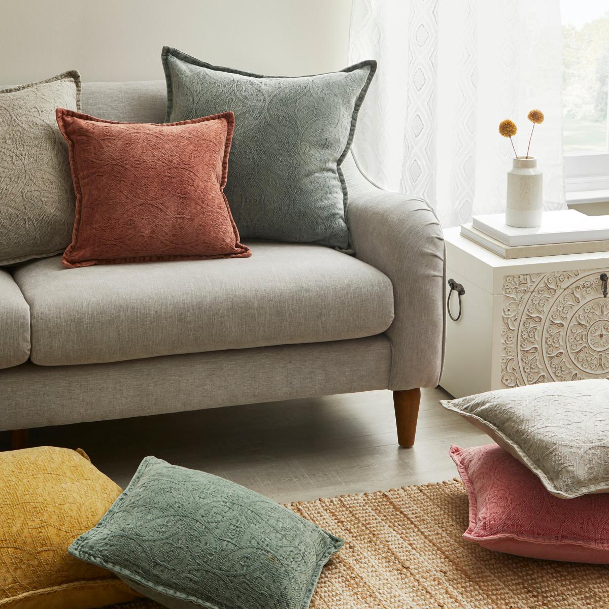 I really like this cushion for its soft, textured finish and warm coral tone, which adds a cosy yet sophisticated touch to any sofa or bed. The stone-washed chenille fabric offers a relaxed, lived-in feel that works particularly well in contemporary, Scandi, or boho interiors. It’s versatile enough to pair with neutral palettes for a subtle pop of colour or with richer tones for a layered look. Practical styling tips include stacking it with other cushions in complementary hues or textures, or using it as an accent piece on a plain armchair to bring visual interest without overwhelming the space. Its plush feel makes it ideal for creating inviting, comfortable seating areas.