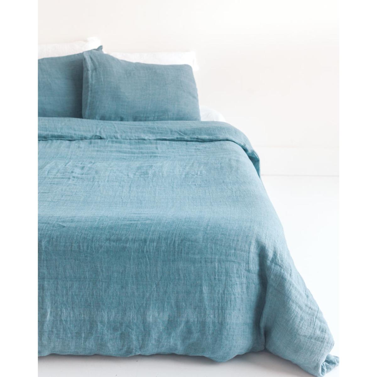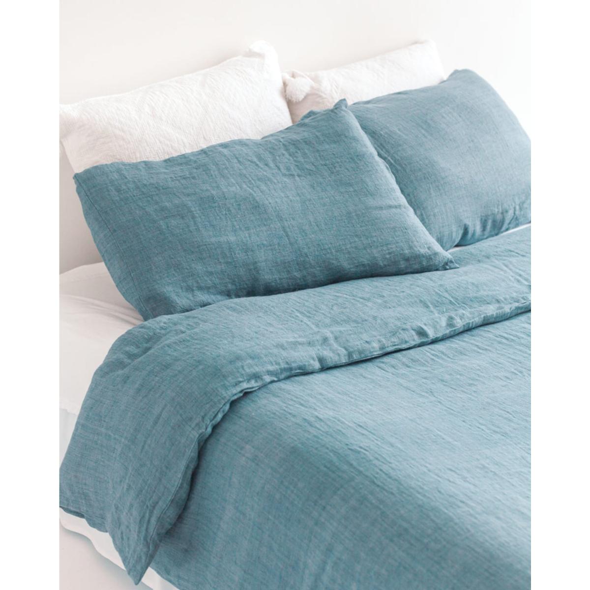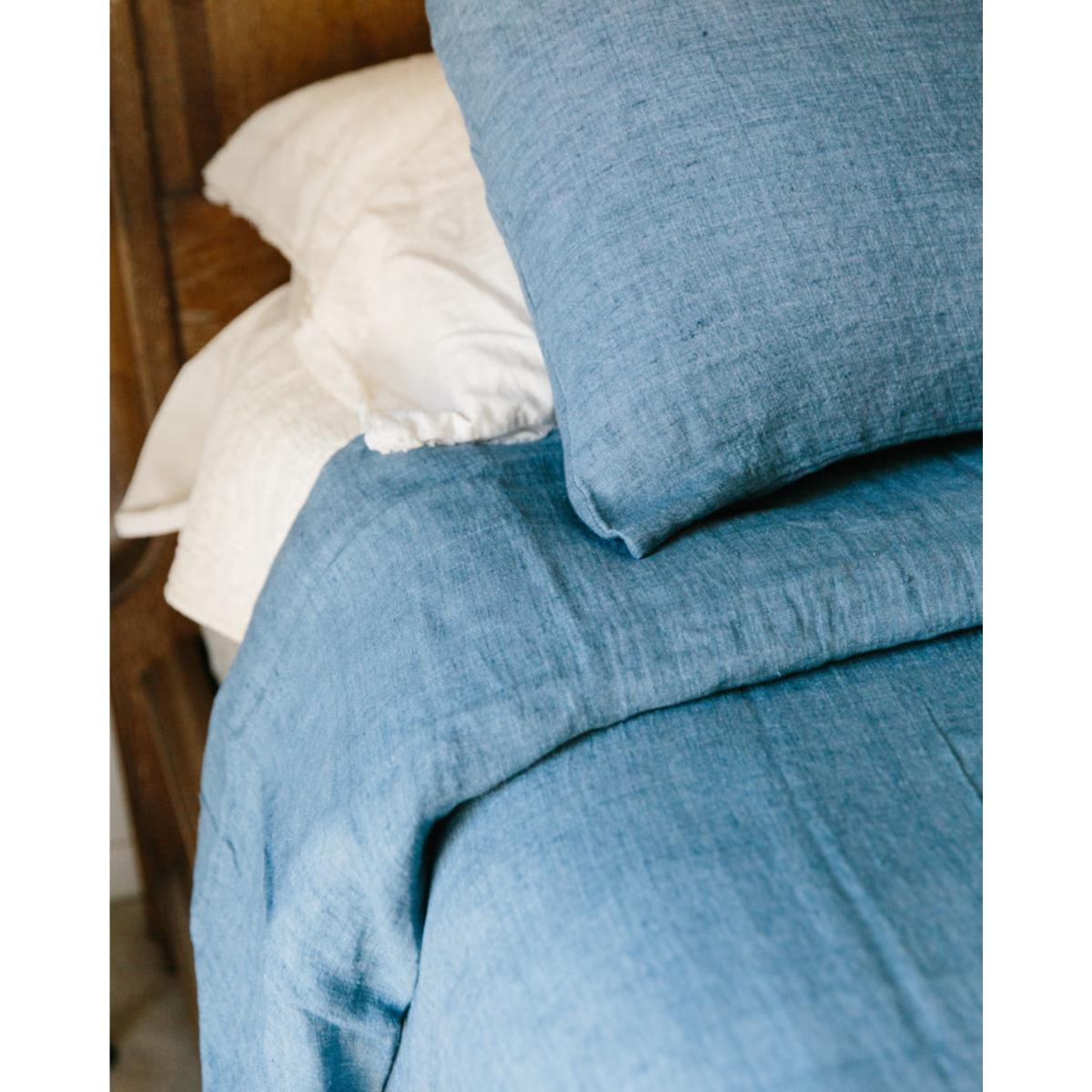Woven on traditional hand looms and stone washed to perfection, these duvet cover sets are truly textile masterpieces. Each is luxuriously soft with the perfect medium weight for a good night's sleep. Linen is naturally temperature-regulating, moisture-wicking, and softens the more it is used and washed. Our linen is meticulously woven, dyed and stonewashed to perfection in a quiet village in southwest India,. Each is made from the finest imported Belgian flax and represents hours of artisan work. Set includes: 1 Queen Size Duvet Cover 90" x 90" 2 Standard Pillow Cases 20” x 26” Linen Storage Bag Ethically crafted in India.