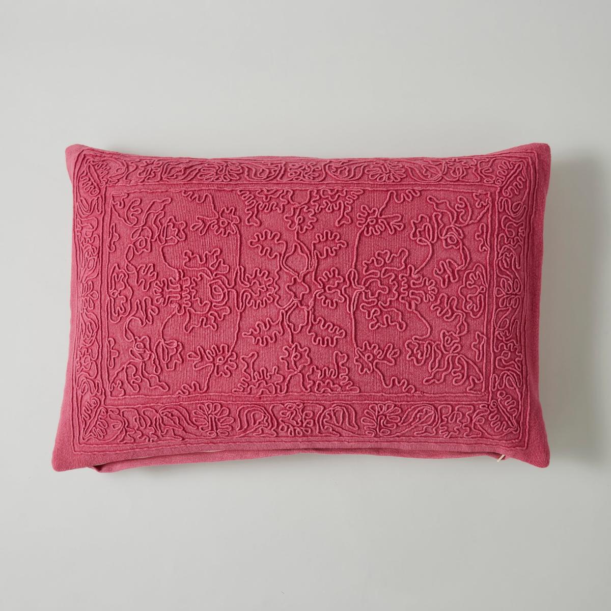 * Stone Washed* Machine embroidered* Floral pattern design* 100% Cotton with polyester filling Dive into the allure of our stone washed oriental cushion. The fusion of stone washing and machine embroidery creates a unique texture that elevates your comfort. The floral motif adds a touch of nature's elegance, and the cobalt hue is a statement in itself. Crafted from soft cotton, this cushion invites you to unwind. Remember to show it some love – hand wash only.