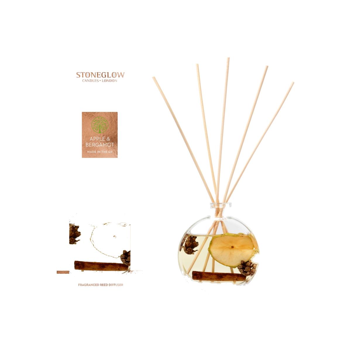 The Nature's Friend collection is handmade here in the UK, with each piece featuring unique details. All are made with natural botanicals meaning that texture and colour can vary per harvest or source. This only adds to the charm of the Nature's Friend products and set them apart from mass produced, machine-made candles and diffusers. Inspired by Nature, each fragranced diffuser is filled by hand with natural fruits, spices and flowers, and are accompanied with beautiful vegan friendly soy candles in matching fragrances. Apple & Bergamot scent. Scent lasts: 10 weeks. Reed Material: Rattan. Includes Fragrance Oil, Reeds. 120ml capacity. Size H11, W9, D3.6cm.