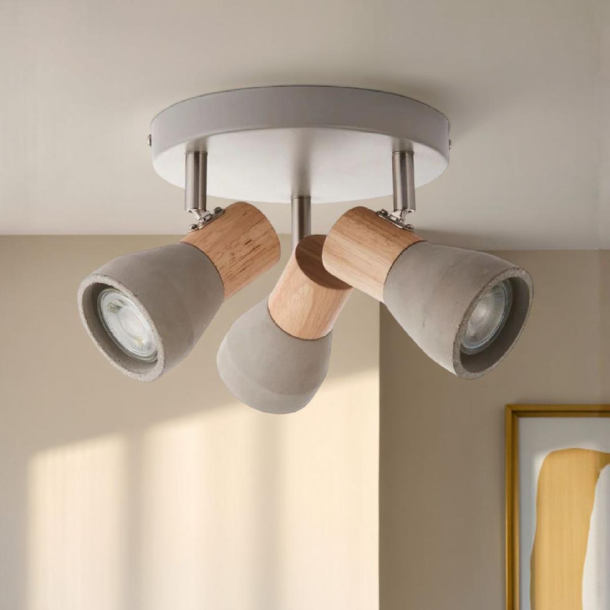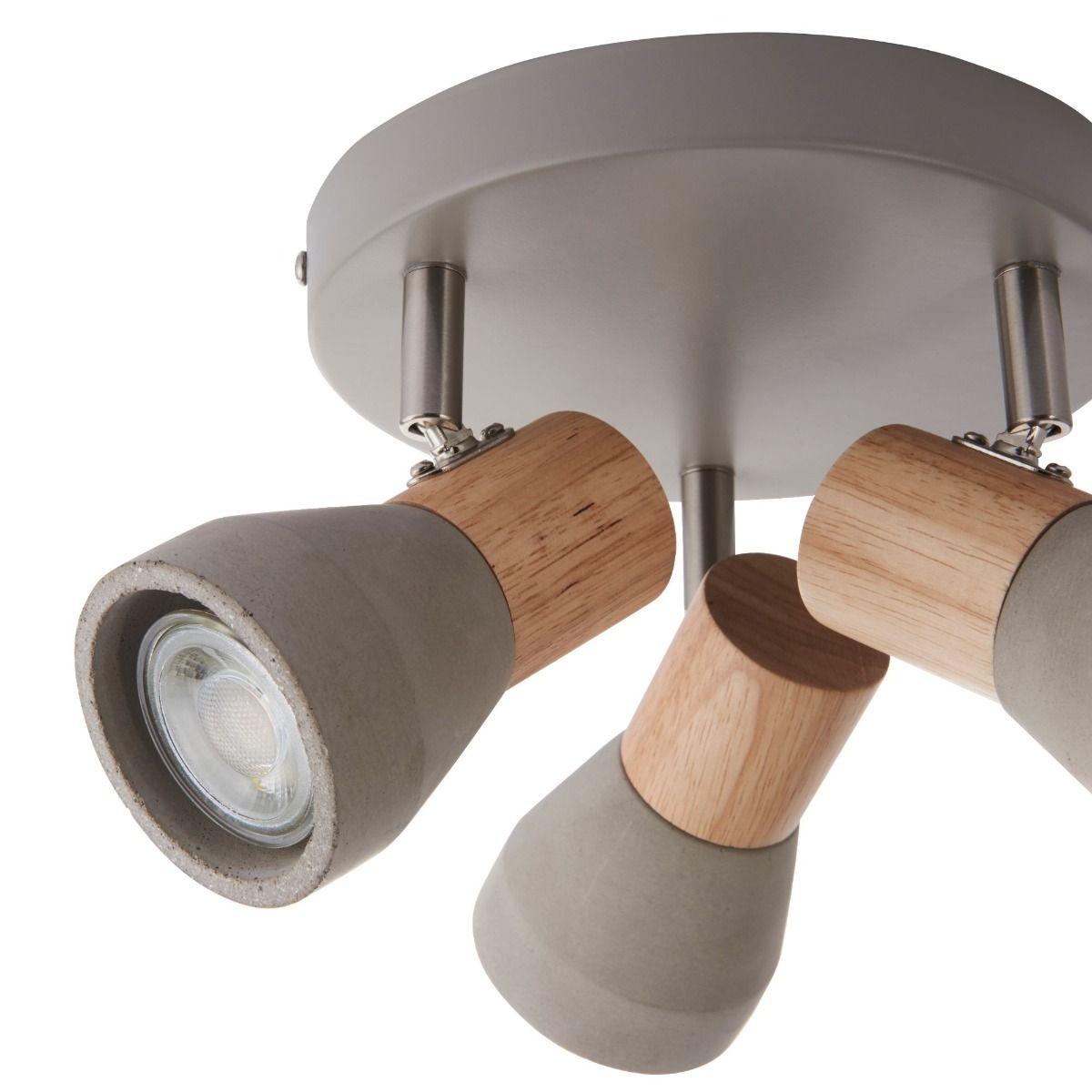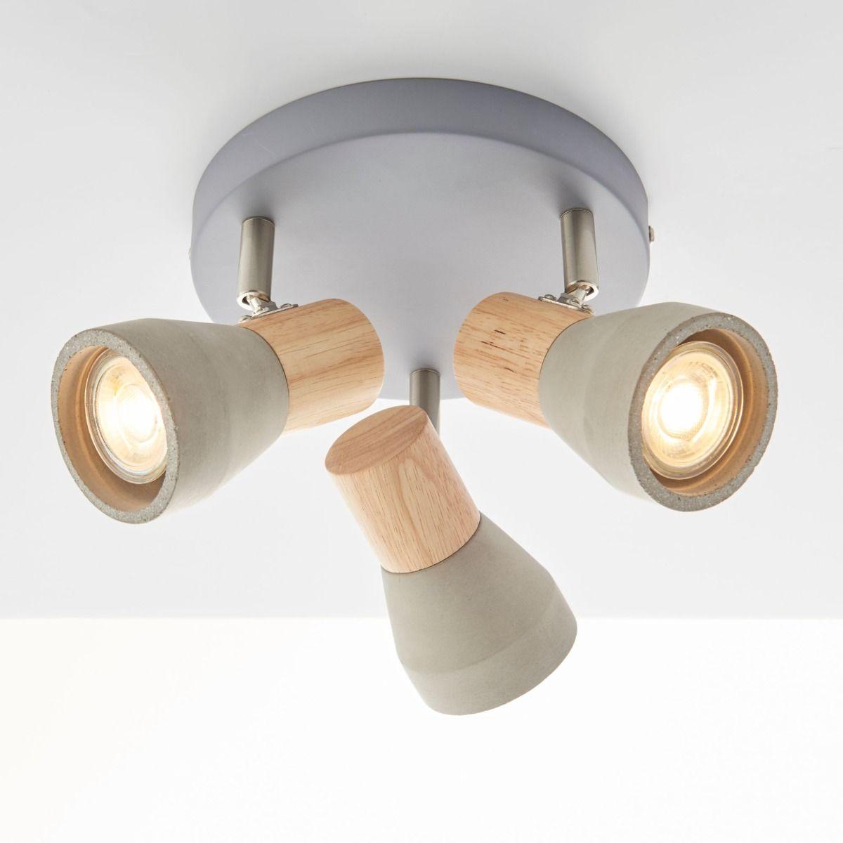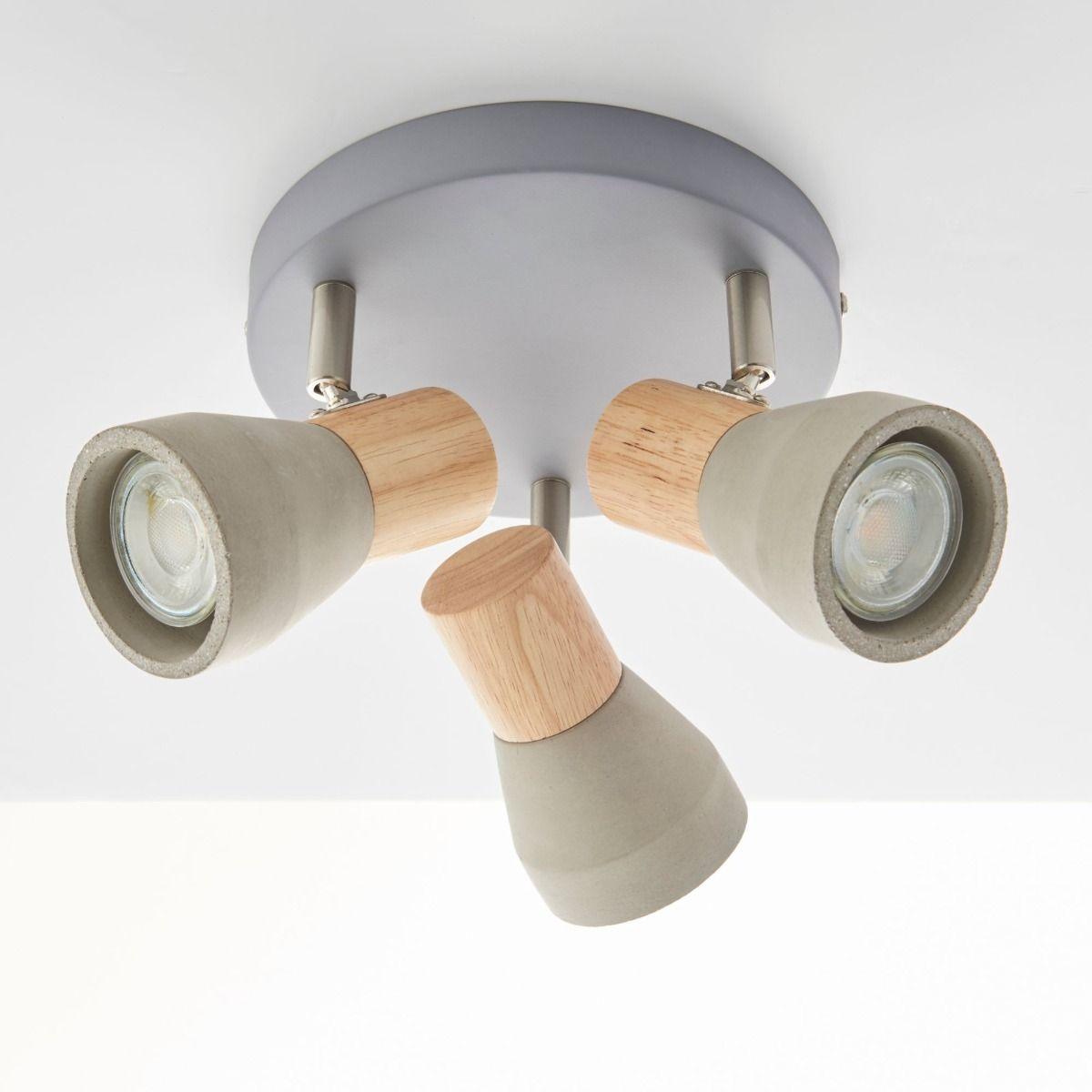Amazing spotlight plate boasting trendsetting concrete and wood effect finish. A stylish addition to your home, this spotlight plate is a stunning fixture for any living space. Finished in a stunning concrete with wooden detail, the spotlight features 3 fully adjustable lamp heads, each with a concrete shade to house the light bulb. It is perfect for use in living rooms, kitchens, hallways, dining rooms and bedrooms. We have a range of GU10 LED light bulbs in a variety of colour tones: Warm White, Cool White and Daylight. Amazing spotlight plate boasting trendsetting concrete and wood effect finish. A stylish addition to your home, this spotlight plate is a stunning fixture for any living space. Finished in a stunning concrete with wooden detail, the spotlight features 3 fully adjustable lamp heads, each with a concrete shade to house the light bulb. It is perfect for use in living rooms, kitchens, hallways, dining rooms and bedrooms. We have a range of GU10 LED light bulbs in a variety of colour tones: Warm White, Cool White and Daylight.