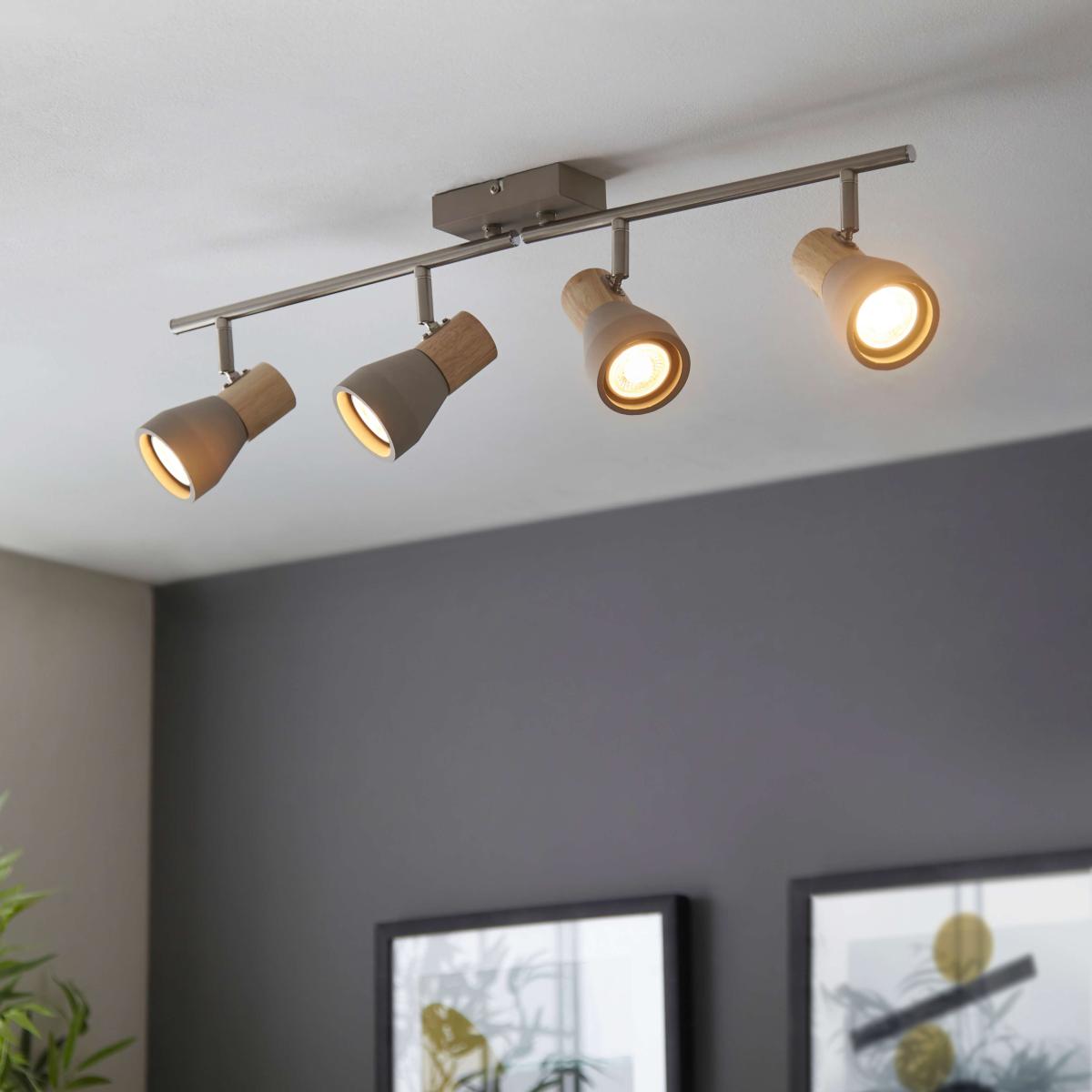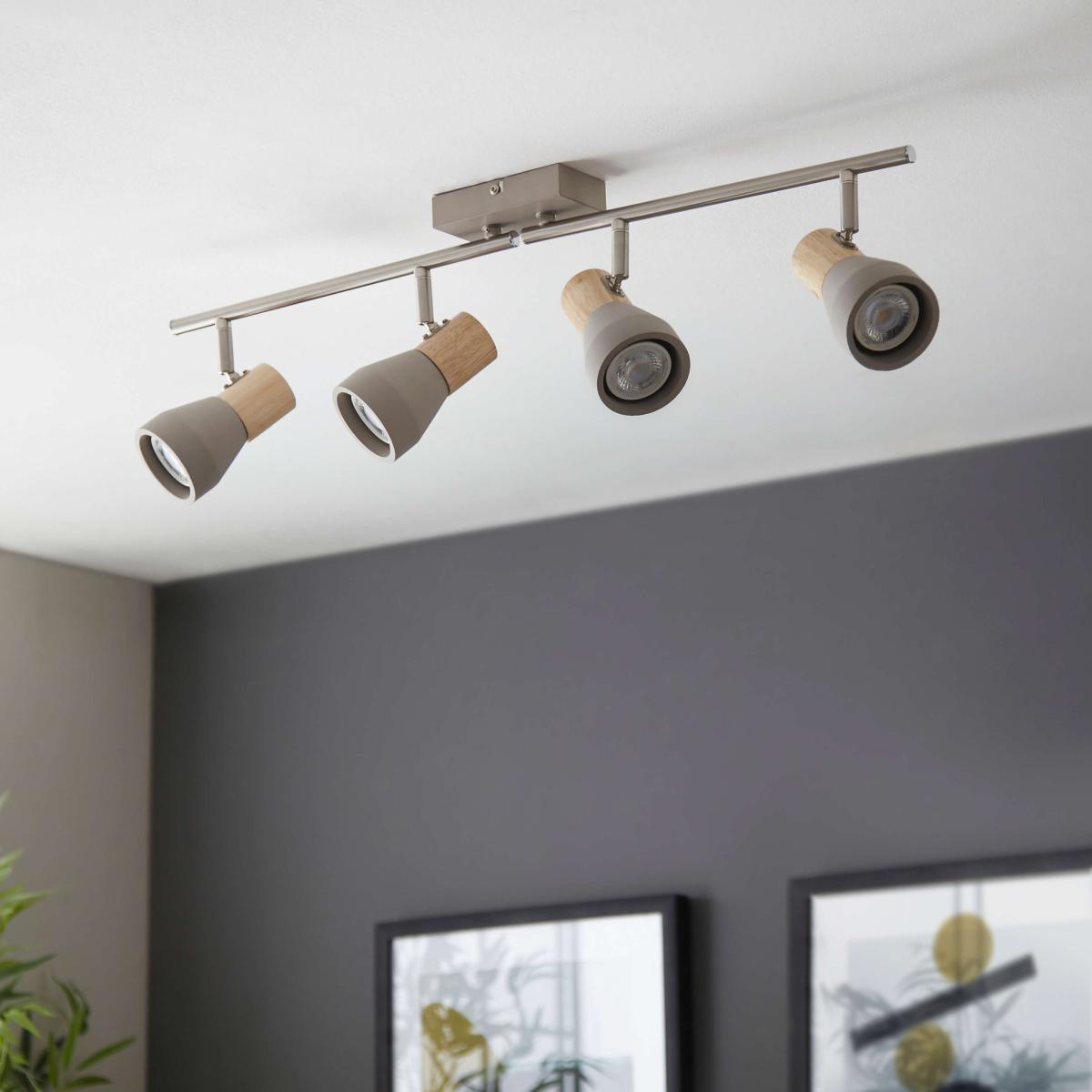 Amazing spotlight bar boasting trendsetting concrete and wood effect finish. A stylish addition to your home, this spotlight bar is a stunning fixture for any living space. Finished in a stunning concrete with wooden detail, the spotlight features 4 fully adjustable lamp heads, each with a concrete shade to house the light bulb. It is perfect for use in living rooms, kitchens, hallways, dining rooms and bedrooms. We have a range of GU10 LED light bulbs in a variety of colour tones: Warm White, Cool White and Daylight. Amazing spotlight bar boasting trendsetting concrete and wood effect finish. A stylish addition to your home, this spotlight bar is a stunning fixture for any living space. Finished in a stunning concrete with wooden detail, the spotlight features 4 fully adjustable lamp heads, each with a concrete shade to house the light bulb. It is perfect for use in living rooms, kitchens, hallways, dining rooms and bedrooms. We have a range of GU10 LED light bulbs in a variety of colour tones: Warm White, Cool White and Daylight.