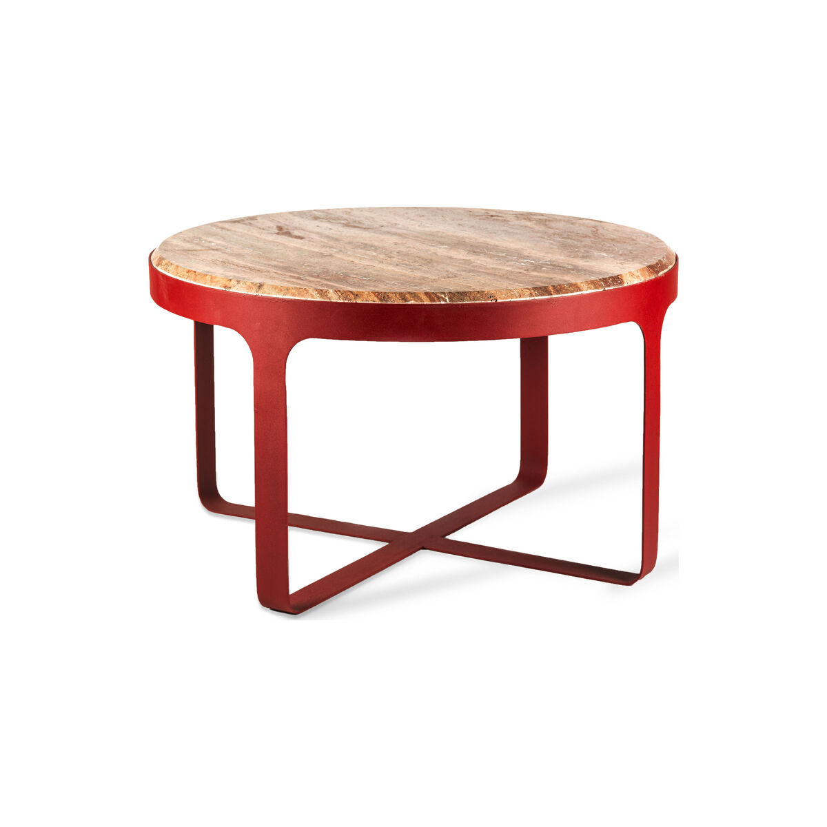 Stoner Coffee table - / Ø 60 x H 35 cm - Travertine stone & metal by Pols Potten Red