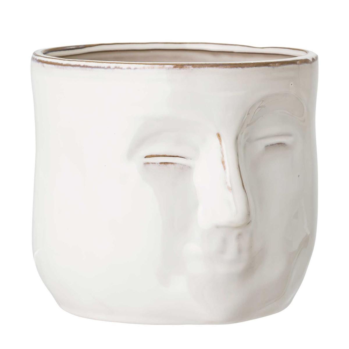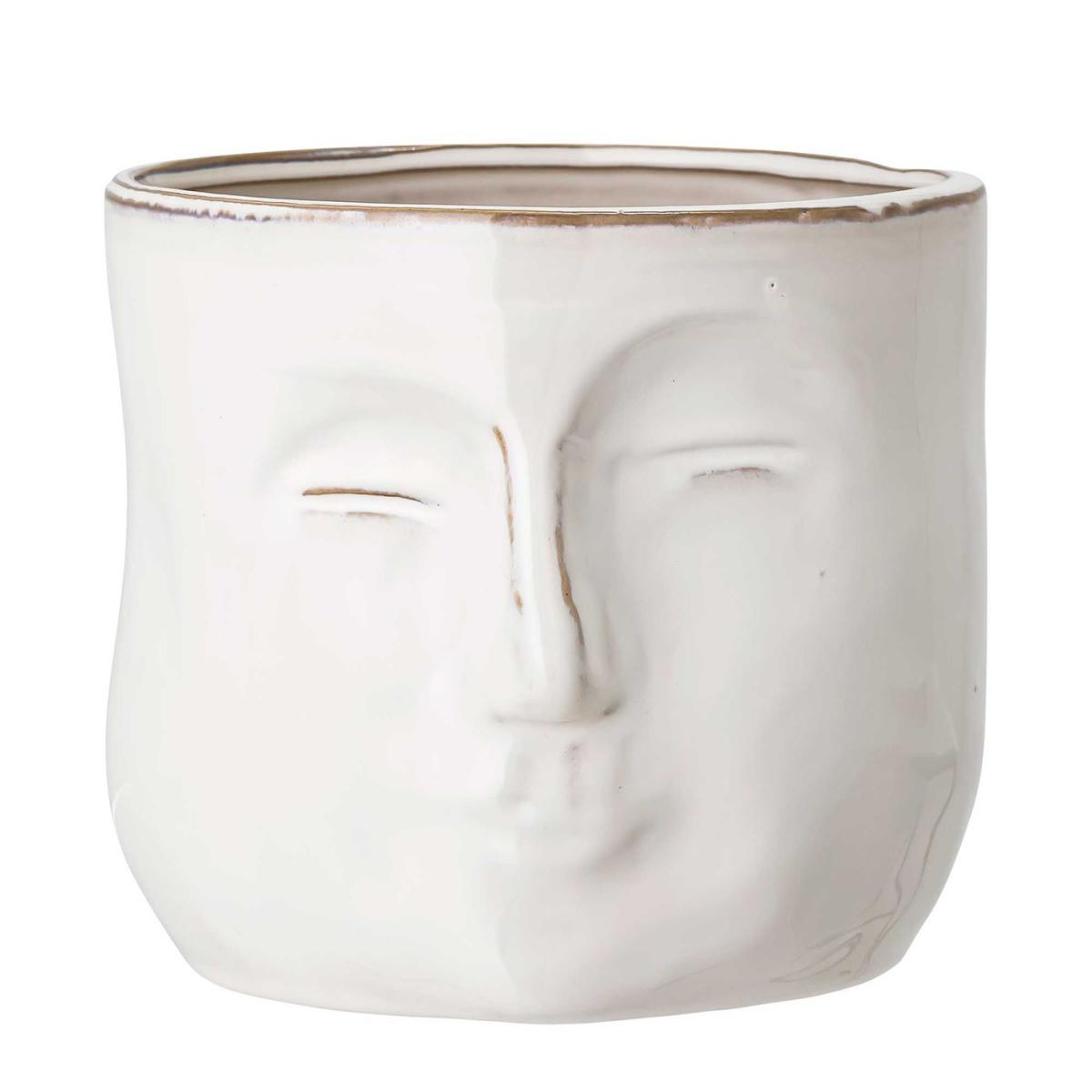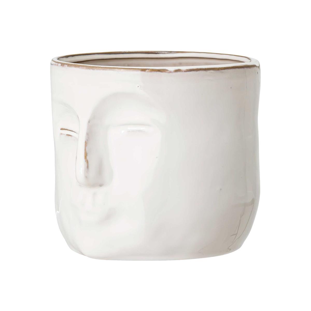 Stoneware Ceramic Face Pot In White Finish - Measuring: W16.5 x D18 x H15.5cm