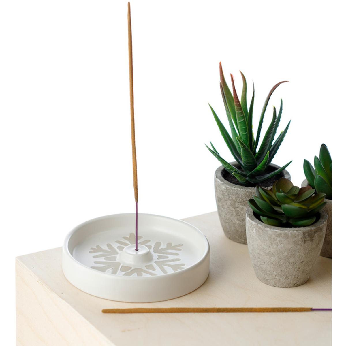 Incense burners are a fantastic item to have in your home whether you use them for burning incense or as a decorative centrepiece. Made from stoneware ceramic, incense burners are easy to use. This incense burner is suitable for use with standard incense sticks and cones (not included). The natural resins in incense can leave a light residue on the surface of the burner, this can be wiped away with a damp cloth. All incense burners come with instructions and safety information. Never leave unattended when lit and always place on a heatproof surface away from drafts and soft furnishings.