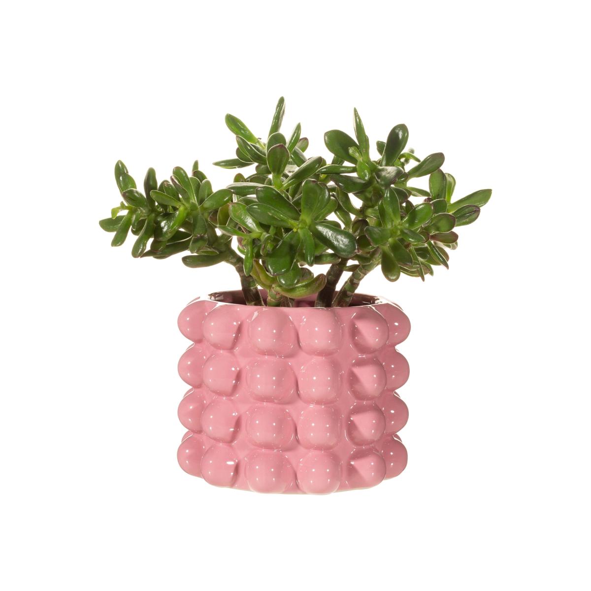 This plant pot is perfect for medium sized indoor plants. Crafted from stoneware to create a bobble design. Height 12 cm, Width 15 cm, (including bobbles). Display as a centrepiece, on a windowsill or side table.
