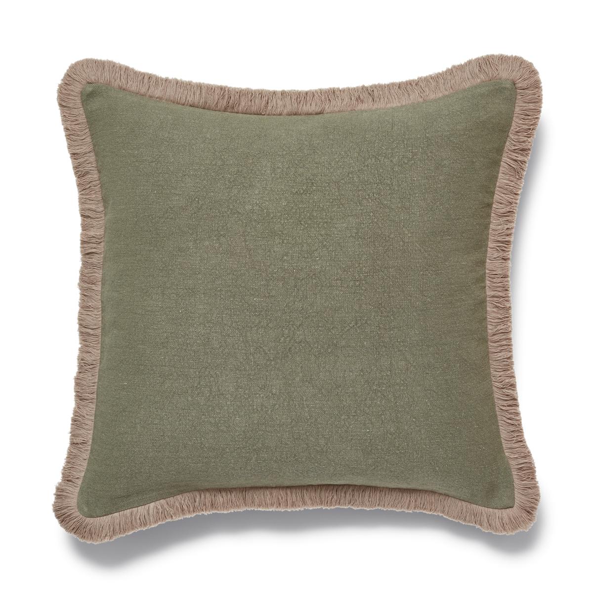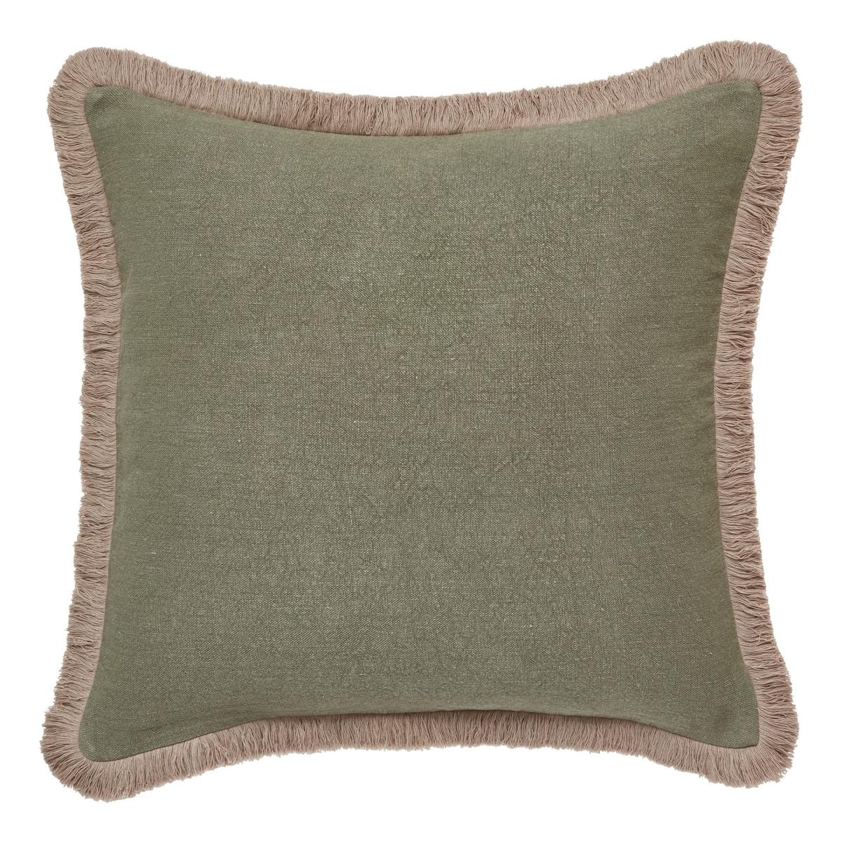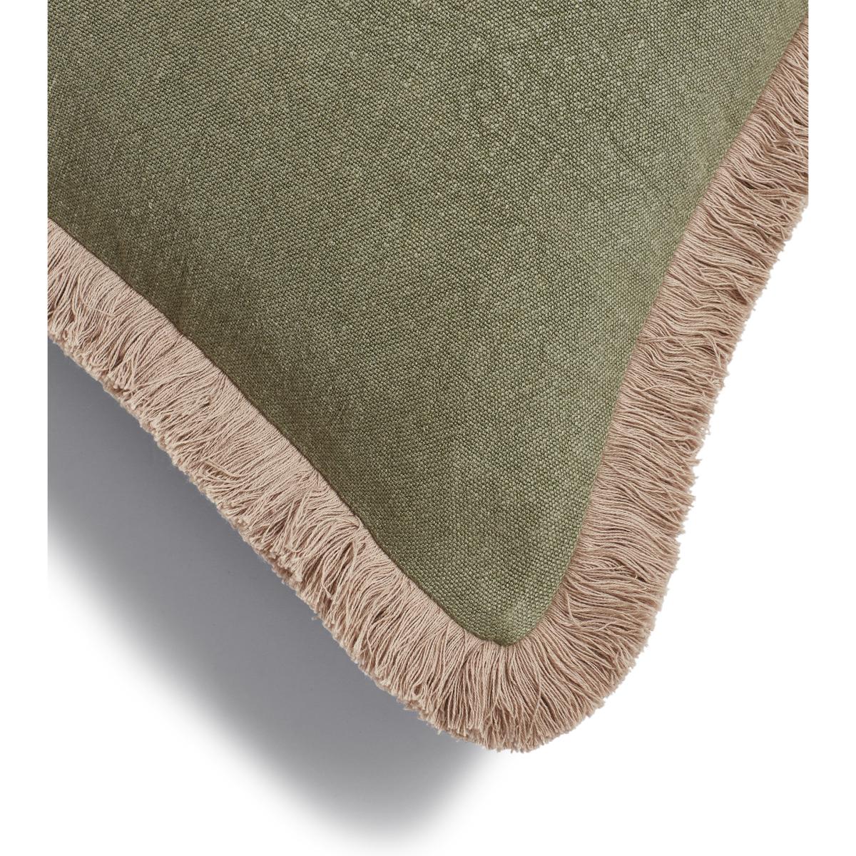 Stonewashed Linen Cushion Cover with Fringing - Lake Green