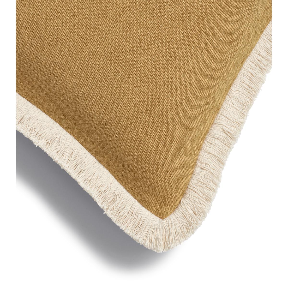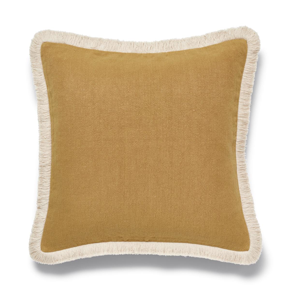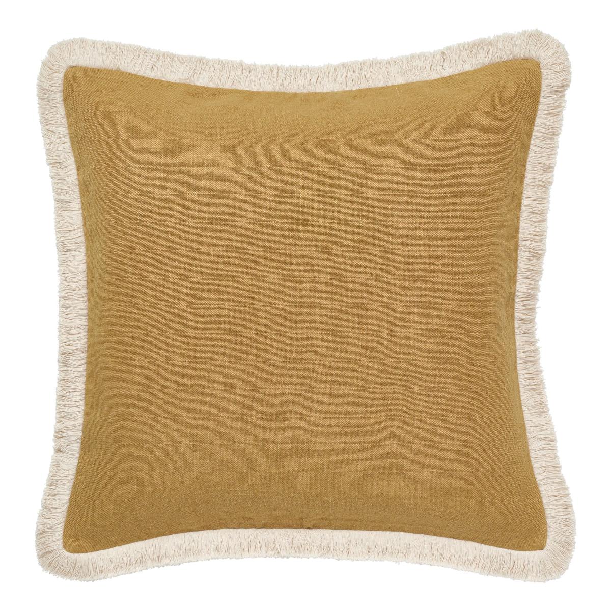 Stonewashed Linen Cushion Cover with Fringing - Ochre