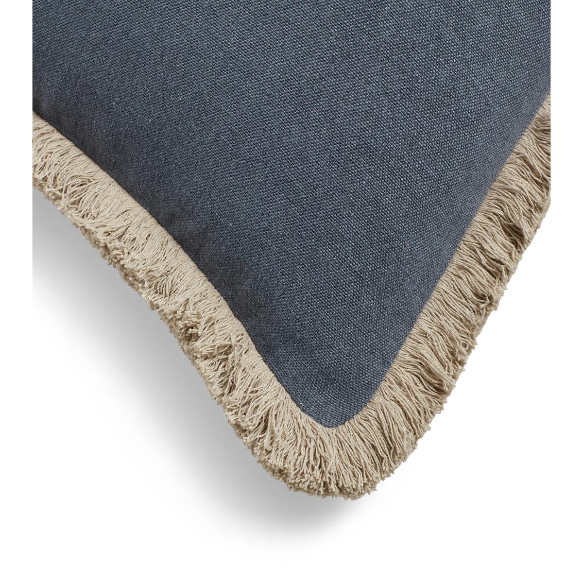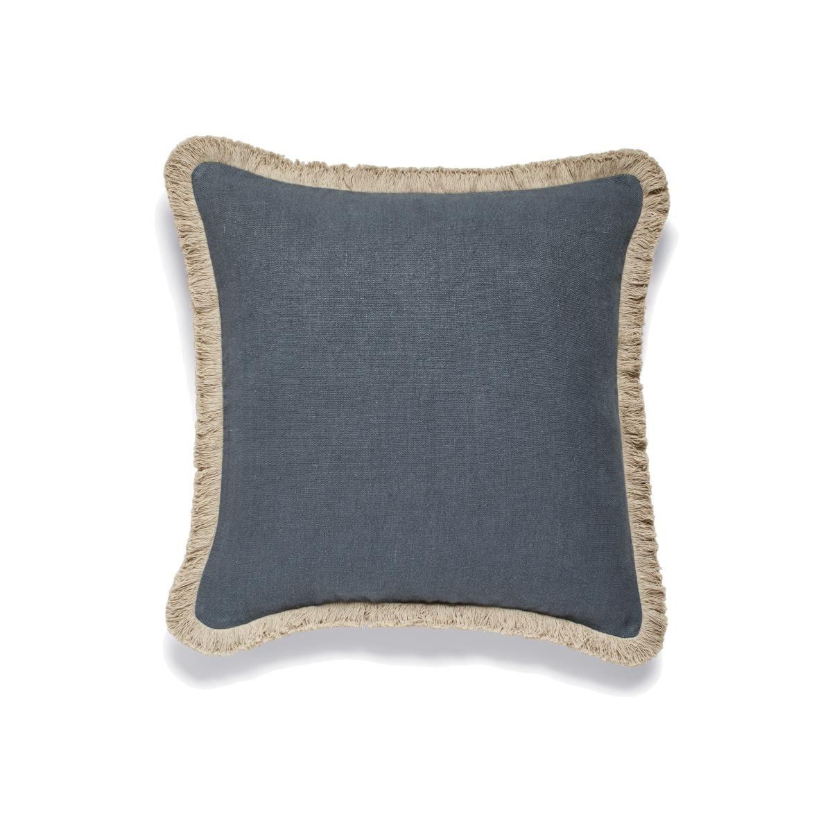 Stonewashed Linen Cushion Cover with Fringing - Petrol