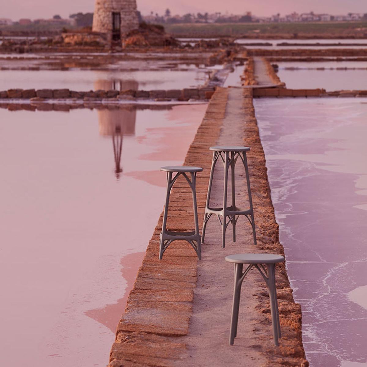 The A.I. family is growing with the arrival of the LIGHT stools: Made with recycled material, they focus on comfort thanks to the wide and welcoming seat. The future is taking shape at Kartell… A pioneer and visionary, famous designer Philippe Starck continues to innovate: he has created the first chair designed by artificial intelligence. To design it, Starck used Autodesk, an American company specialising in 3D design software. To design the A.I. (Artificial Intelligence) chair, Philippe Starck, Autodesk and Kartell asked a single yet crucial question of Dreamcatcher (the generative design software developed by Autodesk): "Would you be able to give our bodies somewhere to rest by using as little materials and energy as possible? With no culture, memories or influence, the software only responded with intelligence, its "artificial" intelligence." A.I. is the first chair designed outside of our brains, outside of our ways of thinking. Human creative thought and artificial intelligence therefore merged to design a chair made completely by an algorithm which meets the original requirements: creating a comfortable, study chair in line with the Kartell collections' aesthetics, with as little material and energy as possible. The A.I. collection is the result of joint work between artificial and human intelligence, defined by Starck himself as "Natural intelligence". Autodesk stated that the design process with the artificial intelligence software was reminiscent of "a child learning". Starck described this process as very similar to a conversation between two human beings. "Why do chairs all look like each other? How can you create a structurally different chair? At one point, I needed to open a new door…" explained Philippe Starck, on the creation of the A.I. chair project. This collaboration between human and artificial intelligence has shown that artificial intelligence can assist the work of a designer by calculating what the optimal responses are to a design idea. The A.I. collection is a symbol of the experimental approach of design and the ecological commitment of designer Philippe Starck. "Coming from elsewhere, a new world is now open to us. A world without limits…", as Starck concluded. No doubt the A.I. chair marks a turning point for the future of design.