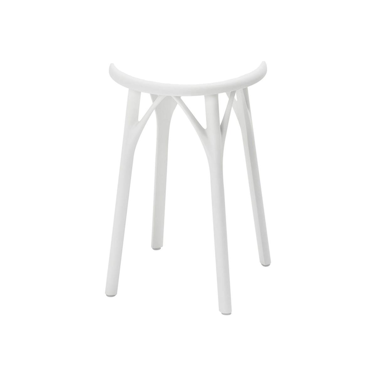 The A.I. family is growing with the arrival of the LIGHT stools: Made with recycled material, they focus on comfort thanks to the wide and welcoming seat. The future is taking shape at Kartell… A pioneer and visionary, famous designer Philippe Starck continues to innovate: he has created the first chair designed by artificial intelligence. To design it, Starck used Autodesk, an American company specialising in 3D design software. To design the A.I. (Artificial Intelligence) chair, Philippe Starck, Autodesk and Kartell asked a single yet crucial question of Dreamcatcher (the generative design software developed by Autodesk): "Would you be able to give our bodies somewhere to rest by using as little materials and energy as possible? With no culture, memories or influence, the software only responded with intelligence, its "artificial" intelligence." A.I. is the first chair designed outside of our brains, outside of our ways of thinking. Human creative thought and artificial intelligence therefore merged to design a chair made completely by an algorithm which meets the original requirements: creating a comfortable, study chair in line with the Kartell collections' aesthetics, with as little material and energy as possible. The A.I. collection is the result of joint work between artificial and human intelligence, defined by Starck himself as "Natural intelligence". Autodesk stated that the design process with the artificial intelligence software was reminiscent of "a child learning". Starck described this process as very similar to a conversation between two human beings. "Why do chairs all look like each other? How can you create a structurally different chair? At one point, I needed to open a new door…" explained Philippe Starck, on the creation of the A.I. chair project. This collaboration between human and artificial intelligence has shown that artificial intelligence can assist the work of a designer by calculating what the optimal responses are to a design idea. The A.I. collection is a symbol of the experimental approach of design and the ecological commitment of designer Philippe Starck. "Coming from elsewhere, a new world is now open to us. A world without limits…", as Starck concluded. No doubt the A.I. chair marks a turning point for the future of design.
