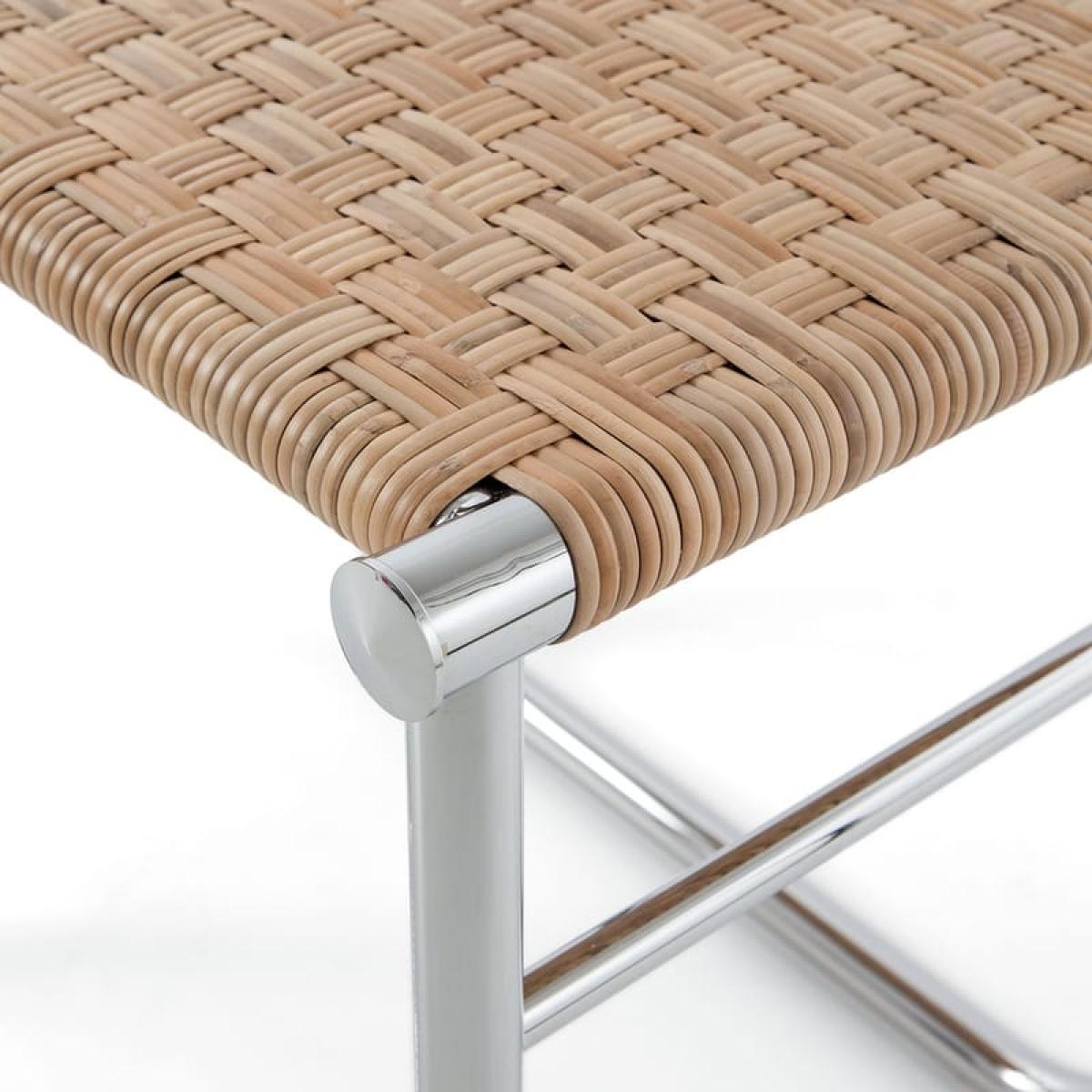 This stool, inspired by Charlotte Perriand’s iconic design, is a versatile piece that combines tradition with modernity. I love how the hand-woven rattan seat brings warmth and texture, making it a great accent in both contemporary and vintage-inspired interiors. Its sleek, tubular metal frame adds a touch of industrial chic, perfect for minimalist or Scandinavian schemes. For practical styling, position it alongside a cosy armchair or use it as a bedside or vanity stool. It’s also suitable in entryways as a stylish spot to sit while putting on shoes or as an extra seating option around a dining table. Keeping the surroundings simple will highlight its craftsmanship and organic appeal.