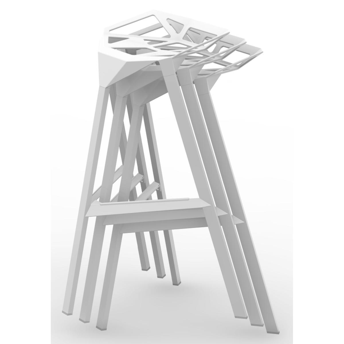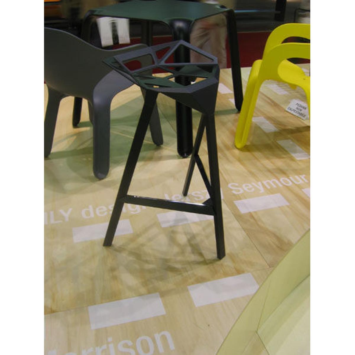 The collection One of Konstantin Grcic enlarges itself with this superb stool Stool One, novelty of Milan 2006. It posts an audacious design based on very geometric lines and industrial materials. The seat is in melted aluminum and the feet are in aluminum, the all is painted with powder polyester. These materials allow a usage for outdoor. On the terrace or indoor, Stool One proposes an original and very graphic presence. One loves! This high stool (total height 77 cm, height of seat 67 cm) is declined in black, red and white. Is equally proposed in seated height 77 cm.