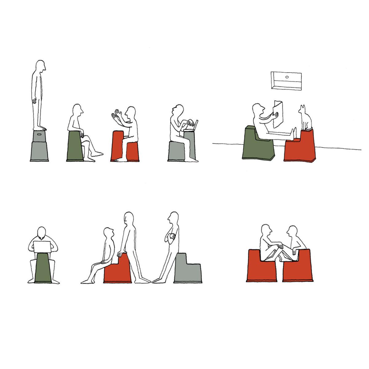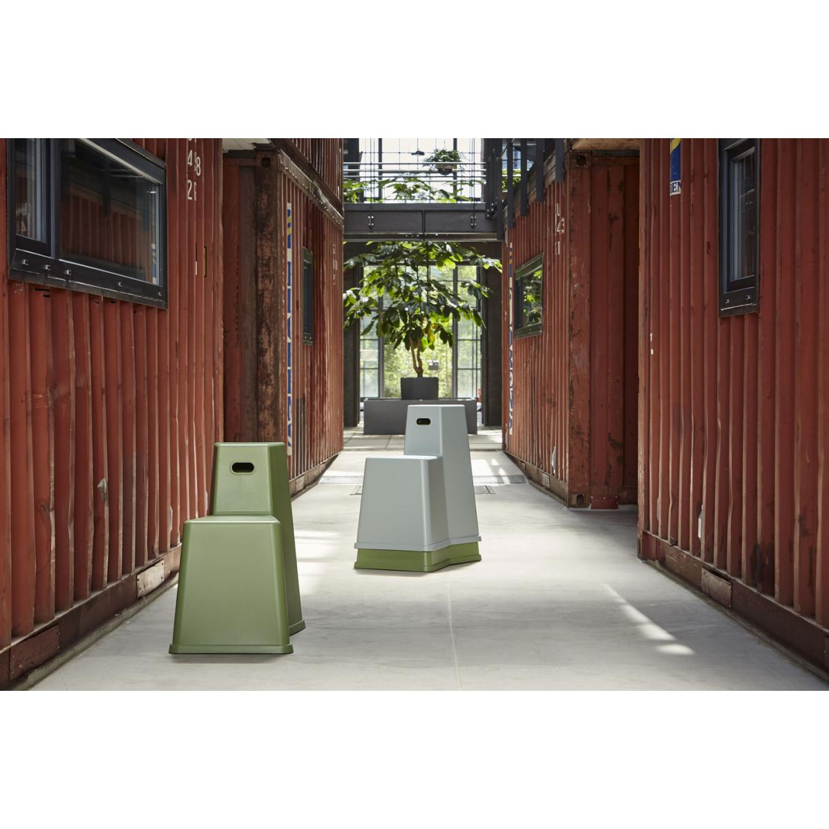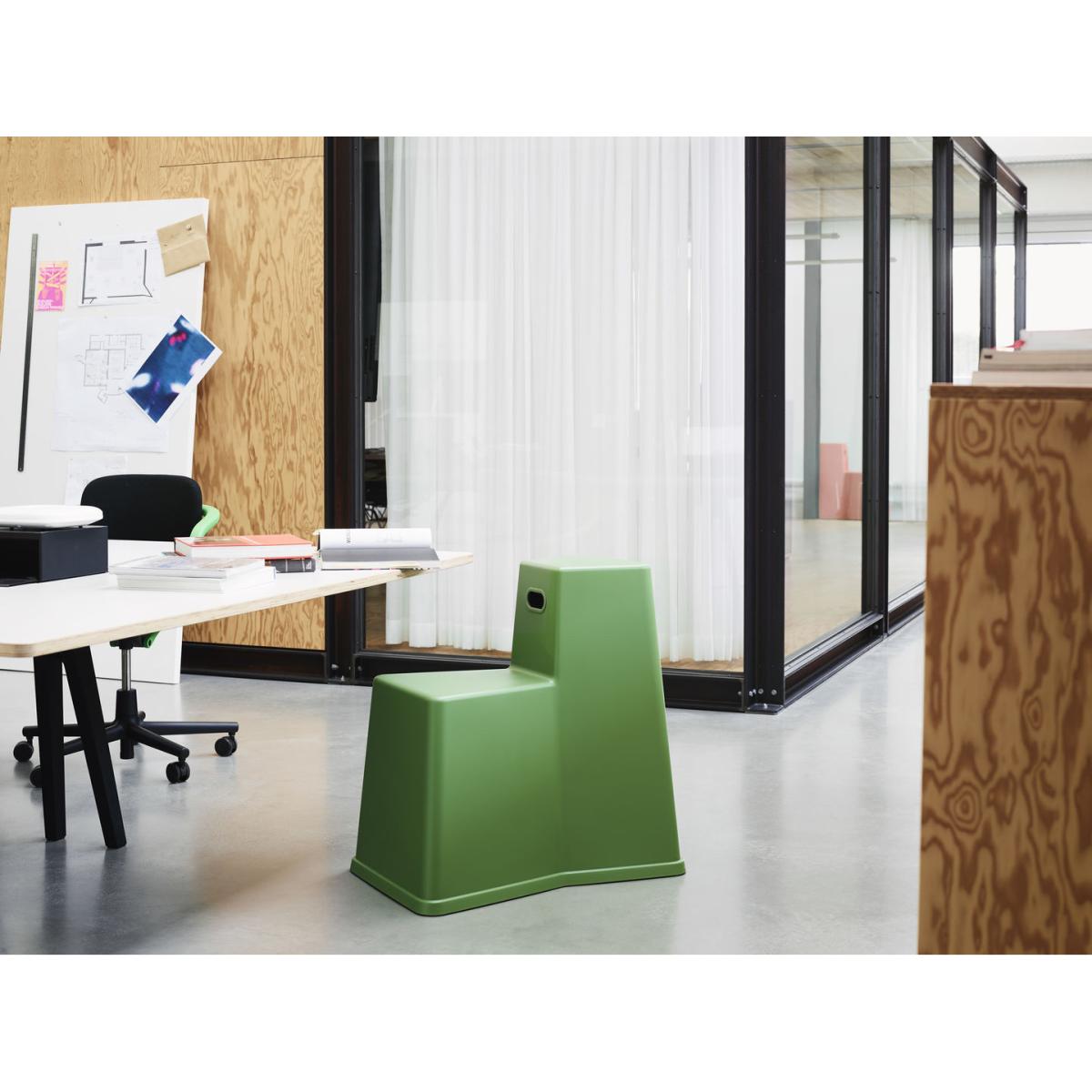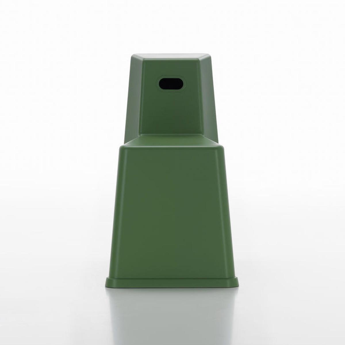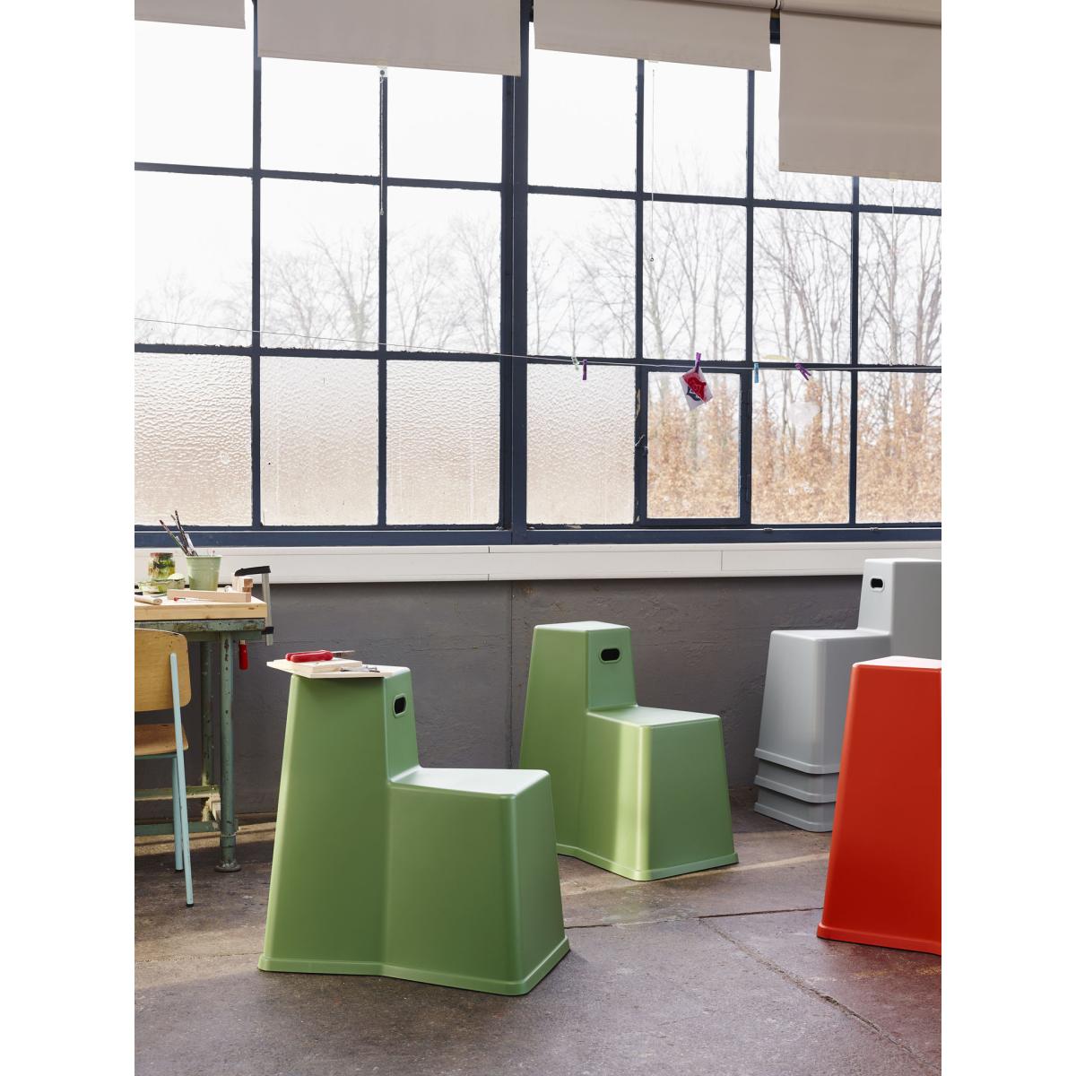 Many of German designer Konstantin Grcic's products have won international design awards and his work is part of the permanent collections of the most important design museums (such as MoMA in New York and the Centre Georges Pompidou in Paris). Created in 2016, the Stool-Tool looks like a monolithic sculpture and invites users to spontaneously try out its many options. With its step-shaped platforms, Stool-Tool unites chair and side table in a single object. Its use intuitively reveals lots of possible seating positions and functions: stool, step, side table. The backrest platform can be used as a small work or storage surface. Lightweight and stackable, the Stool-Tool can be easily transported thanks to a cut-out handle. It can be used indoors and out. A versatile work tool, Stool-Tool is a multifunctional piece of office furniture that brings added value to any workspace. Stool-Tool is suitable for the most varied fields of use: office as well as living room, library, children's room, including areas used as workshops and for meetings.