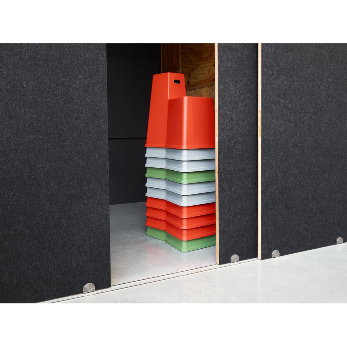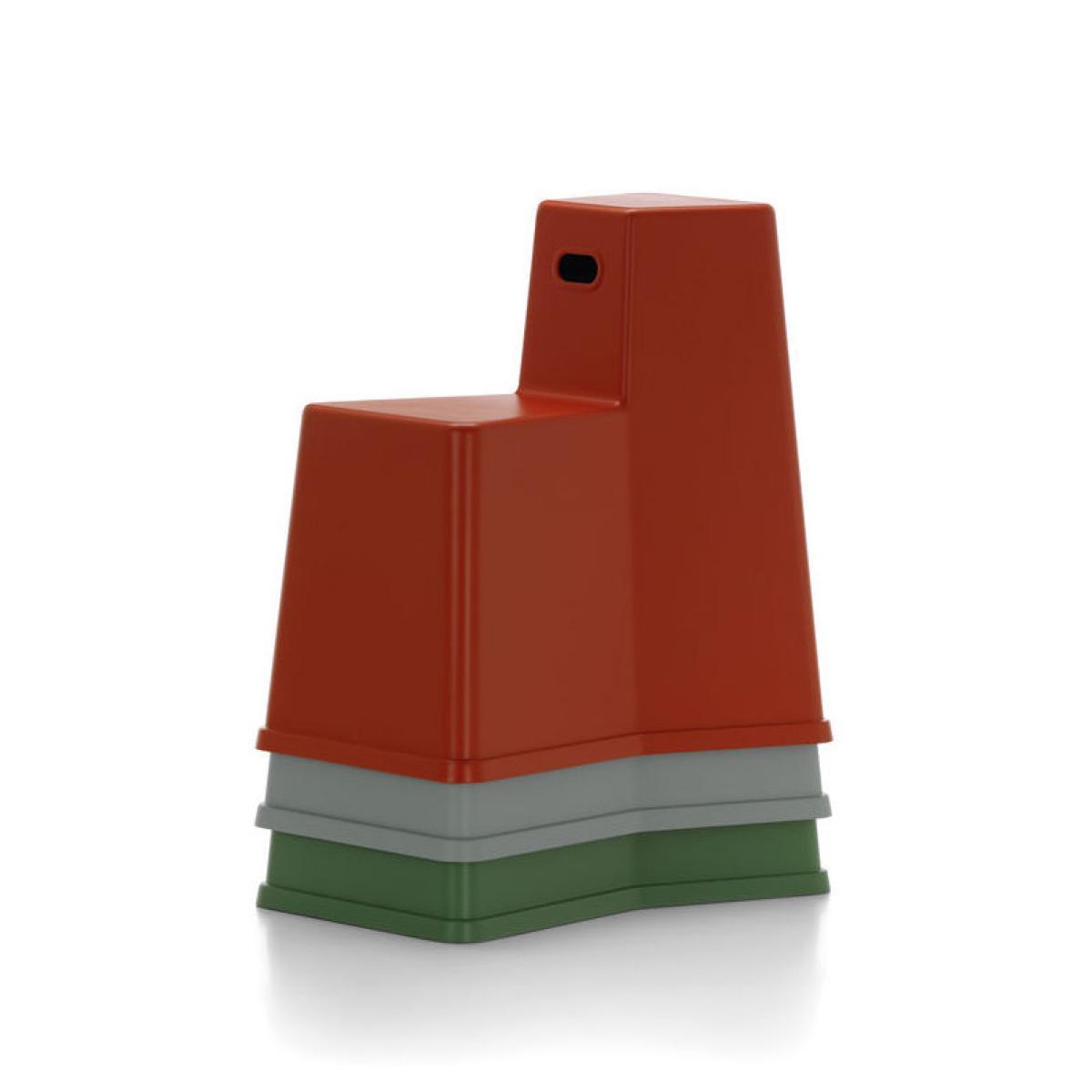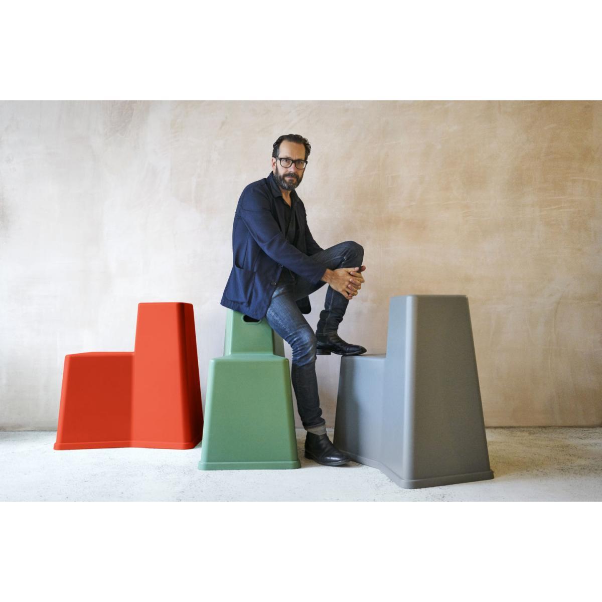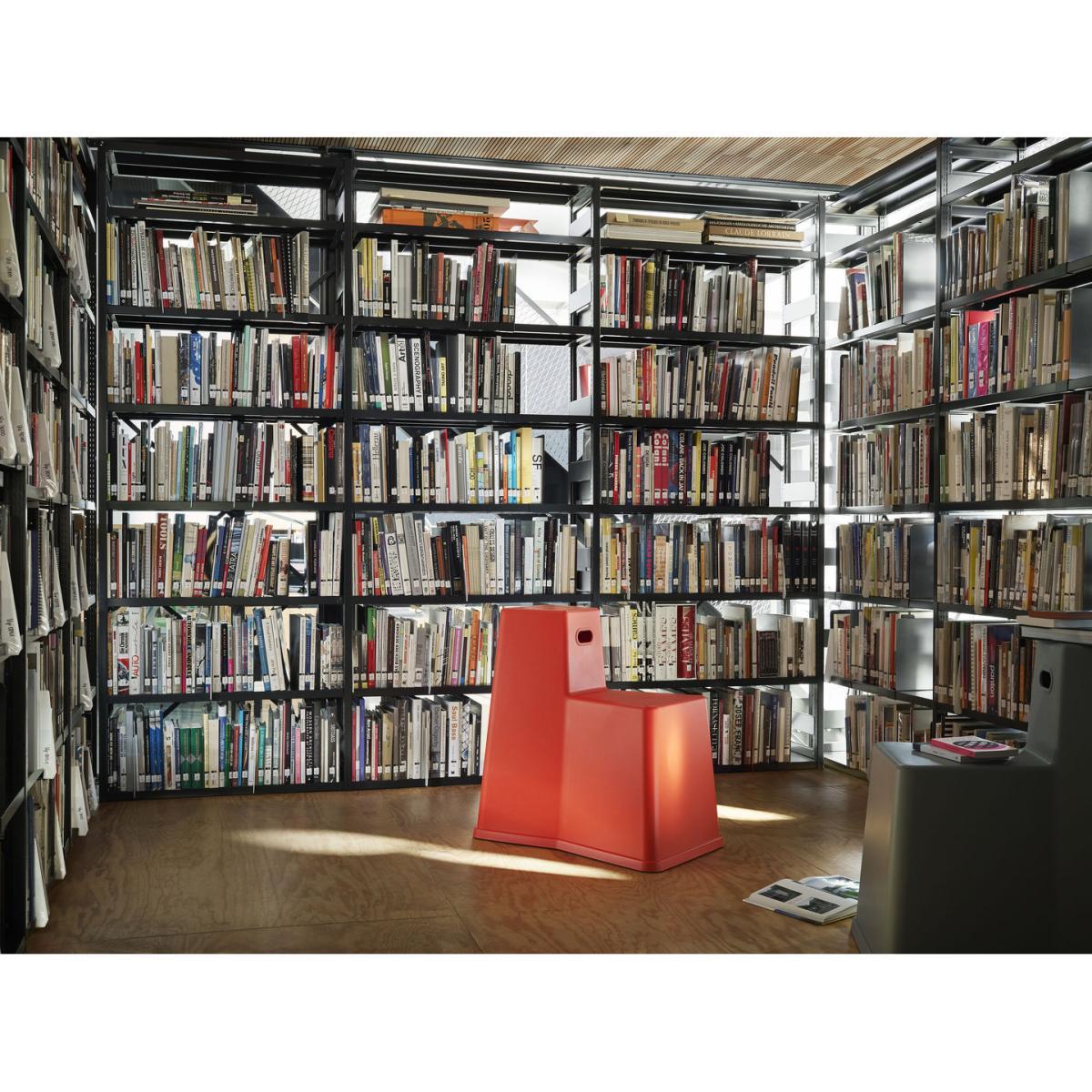 Many of German designer Konstantin Grcic's products have won international design awards and his work is part of the permanent collections of the most important design museums (such as MoMA in New York and the Centre Georges Pompidou in Paris). Created in 2016, the Stool-Tool looks like a monolithic sculpture and invites users to spontaneously try out its many options. With its step-shaped platforms, Stool-Tool unites chair and side table in a single object. Its use intuitively reveals lots of possible seating positions and functions: stool, step, side table. The backrest platform can be used as a small work or storage surface. Lightweight and stackable, the Stool-Tool can be easily transported thanks to a cut-out handle. It can be used indoors and out. A versatile work tool, Stool-Tool is a multifunctional piece of office furniture that brings added value to any workspace. Stool-Tool is suitable for the most varied fields of use: office as well as living room, library, children's room, including areas used as workshops and for meetings.
