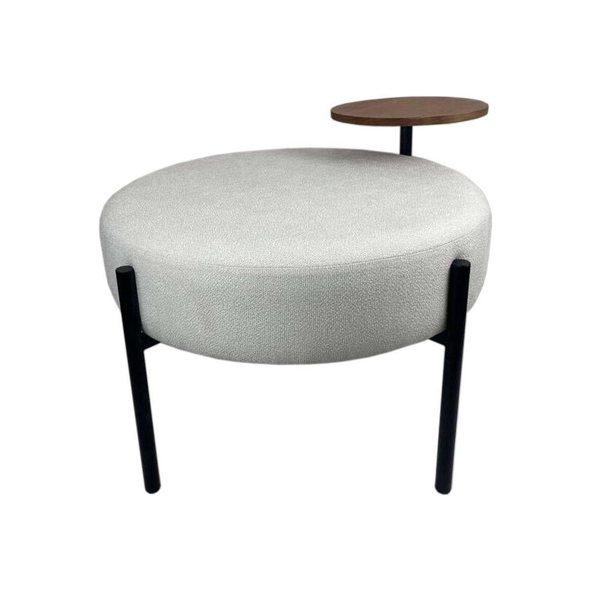 This Stool with Table will complete the decor of any environment. Upholstered in a beautiful cream fabric, this stool's sleek, modern black metal legs add the perfect visual complement. It's versatile and can be used as a footstool or coffee table. This stool contrasts minimal lines and is a soft, comfortable stool. The neutral colours and different textures will add a visual, functional piece to your interior. Its design stands out for its black-finished metal legs on the outside of the stool, giving it a modern touch and creating the effect of a round pouffe that floats on black metal legs.
