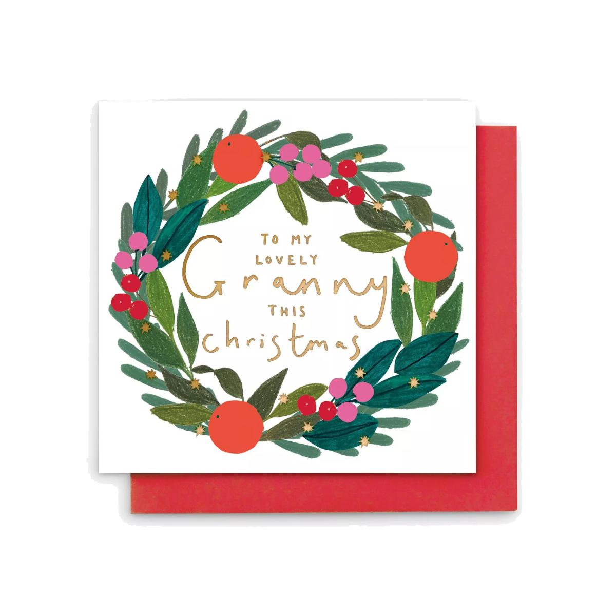 Stop the Clock Design Granny Festive Wreath Christmas Card