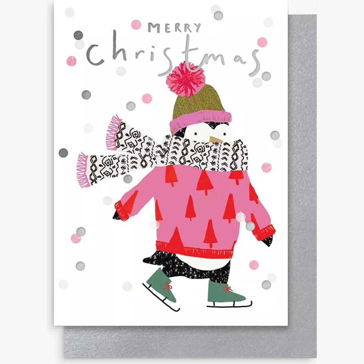 I love this ice skating penguin Christmas card; it’s a playful addition that can bring a charming touch to festive interiors. It works particularly well in cosy, family-oriented spaces or on a seasonal gallery wall where its whimsical vibe can shine. To style it effectively, consider pairing it with other holiday-themed items - such as rustic wooden decorations or colourful textiles - to enhance its cheerful appeal. Display it in a frame or as part of a layered arrangement with other cards and artwork to create an inviting, festive focal point. Its fun, whimsical design adds a touch of lightheartedness to any winter setting.