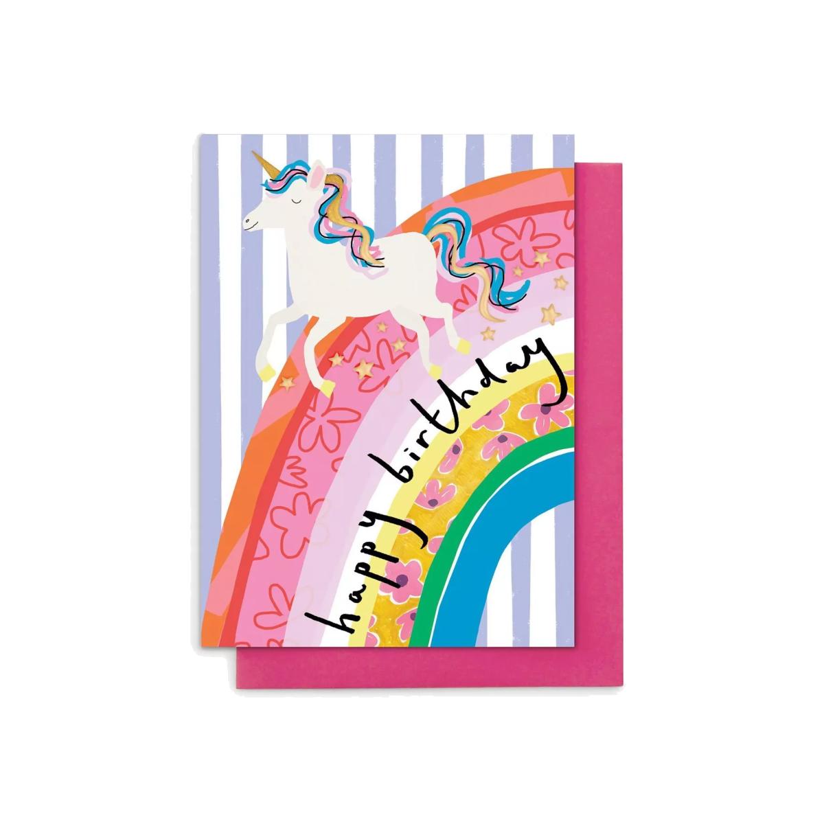 Stop the Clock Design Unicorn & Rainbow Birthday Card