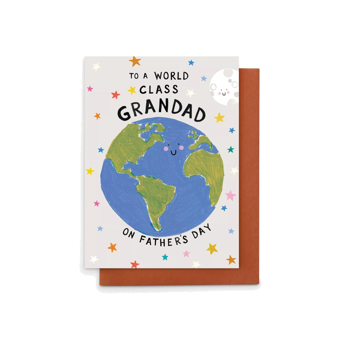 A greetings card from Stop the Clock Design made for your grandparent to wish him a happy Father's Day. Blank inside for you to write your personal message, this card comes with an orange envelope. Sourced and made in the United Kingdom. All the cards we sell are made without using glitter and are recyclable.