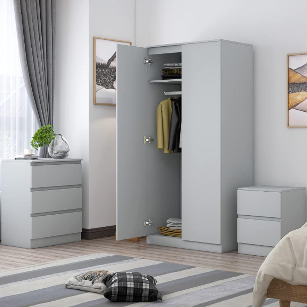 Stora 2 Door Matt Grey Bedroom Wardrobe, Scandinavian Style Furniture - Matt Grey
