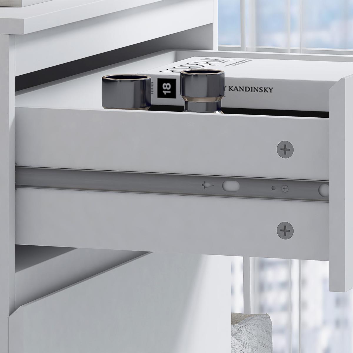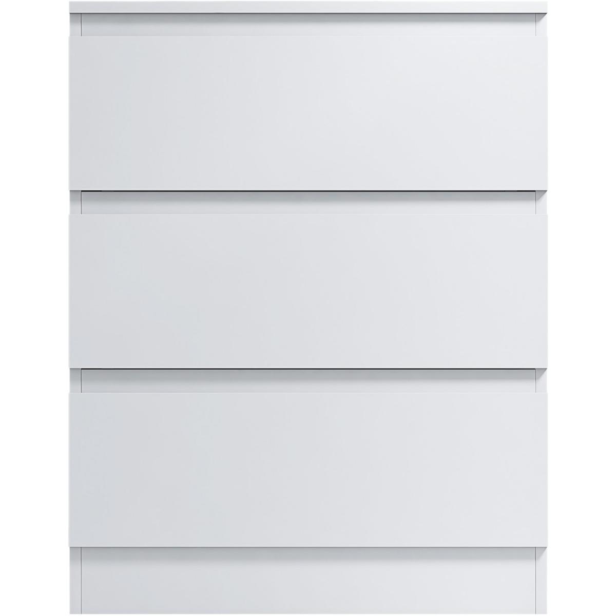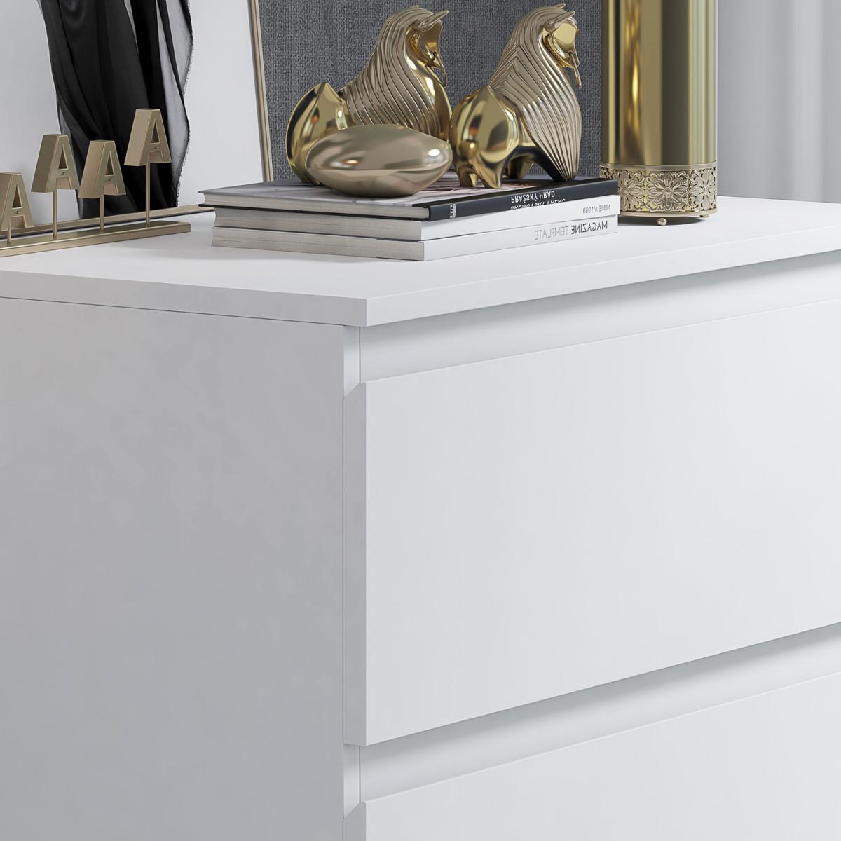 Introducing our 3 Drawer Matt White Bedside Chest with Chamfered Drawer Fronts - the perfect addition to any bedroom, living room, or hallway. This beautifully designed piece of furniture features centralised metal drawer runners that ensure smooth and effortless operation of each drawer. The chest is crafted from high quality materials and finished with a scratch and UV-resistant melamine coating, ensuring that it will withstand the test of time and remain as beautiful as the day you bought it. The matt white finish is sleek and modern, complementing any decor style and making a statement in any space.