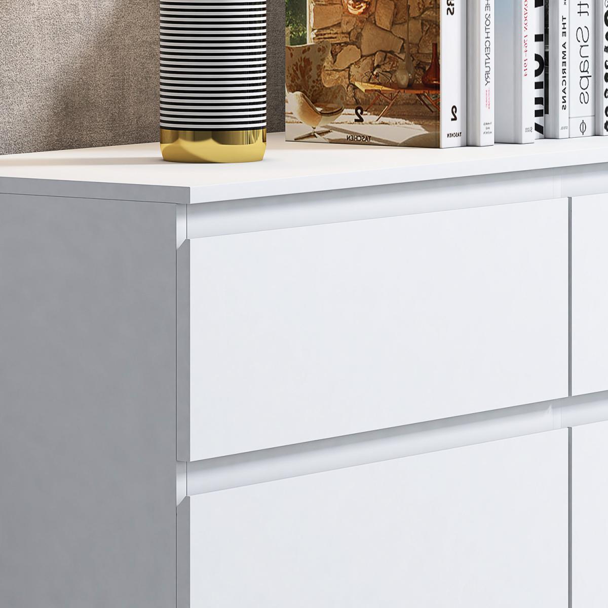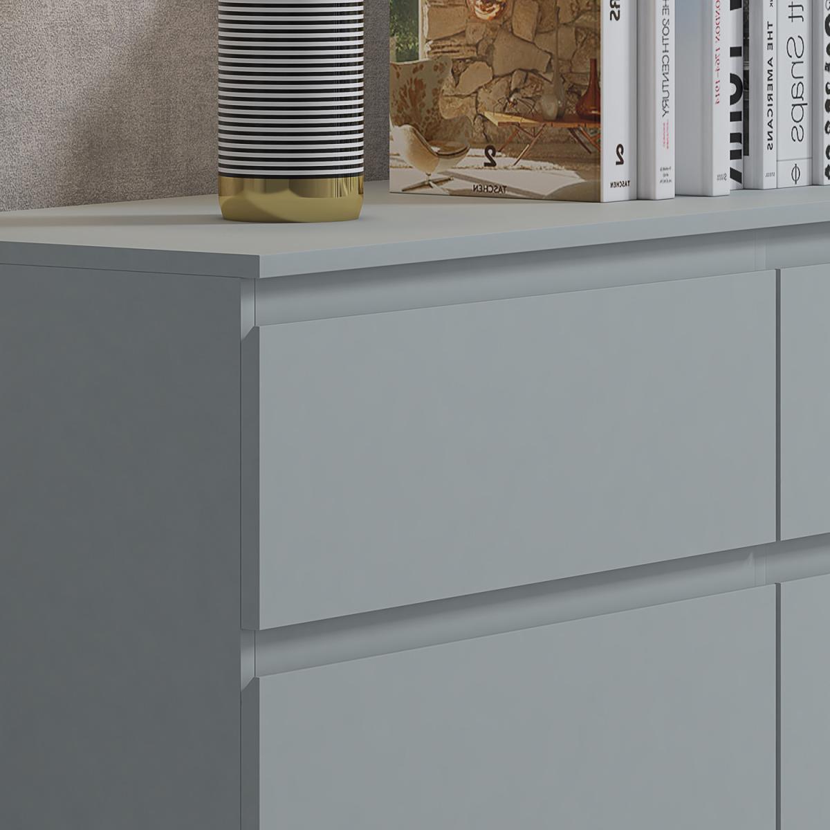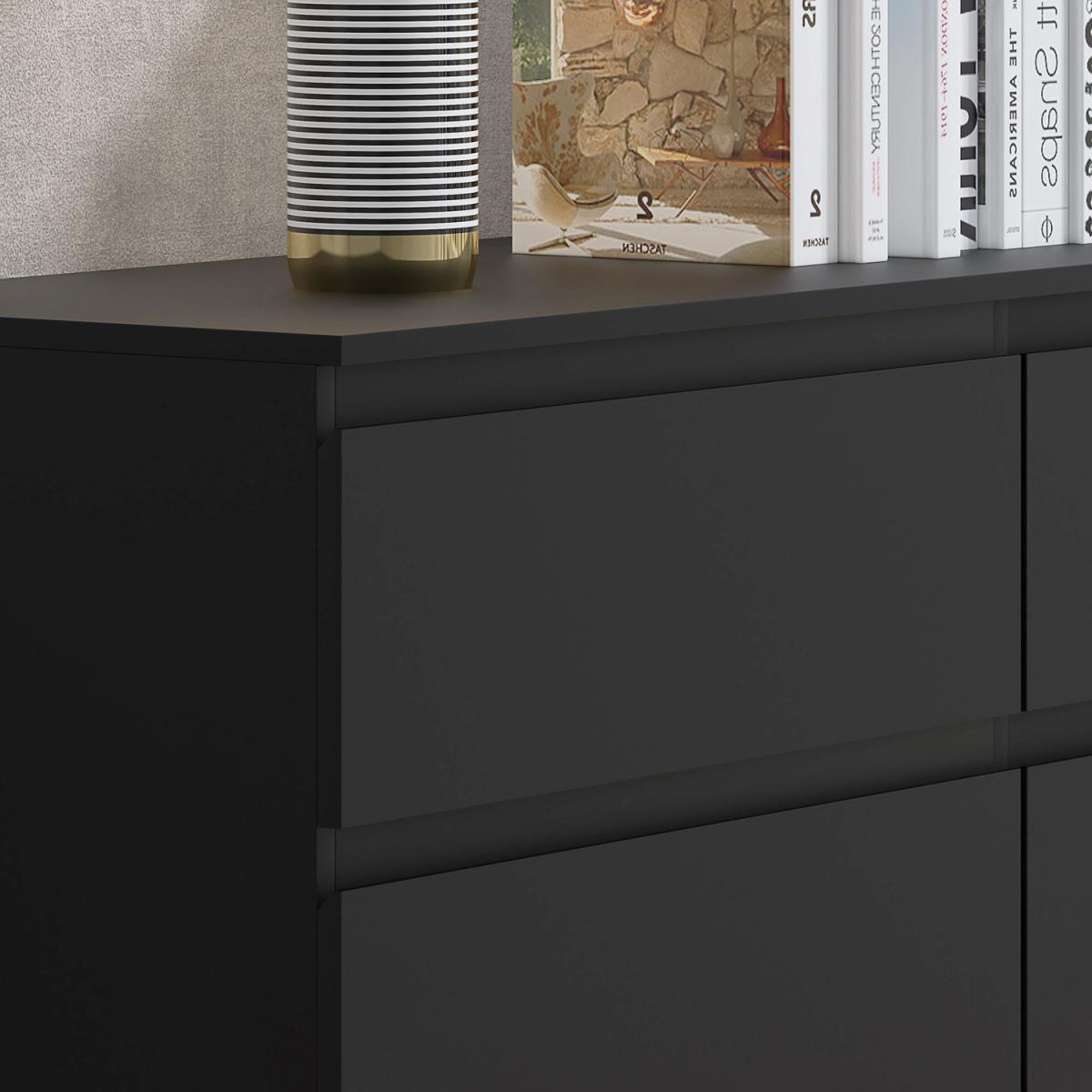 Featuring centralised drawer runners, this chest maximizes storage space by providing extra room for your belongings. The recessed angled chamfered drawer fronts ensure easy access, allowing you to effortlessly retrieve and organize your items. The smooth and quiet drawer runners guarantee a seamless experience, while the largest storage space per drawer available ensures that you can store a variety of items, from clothing to accessories. Crafted with durability in mind, this chest is made from a strong and durable MDF with a melamine coating. Making it scratch and UV resistant, ensuring its long-lasting beauty. The matt drawer fronts, paired with a matt frame, create a striking visual appeal that enhances any interior decor. For your convenience, the chest is delivered flat packed, ensuring fast and easy delivery.