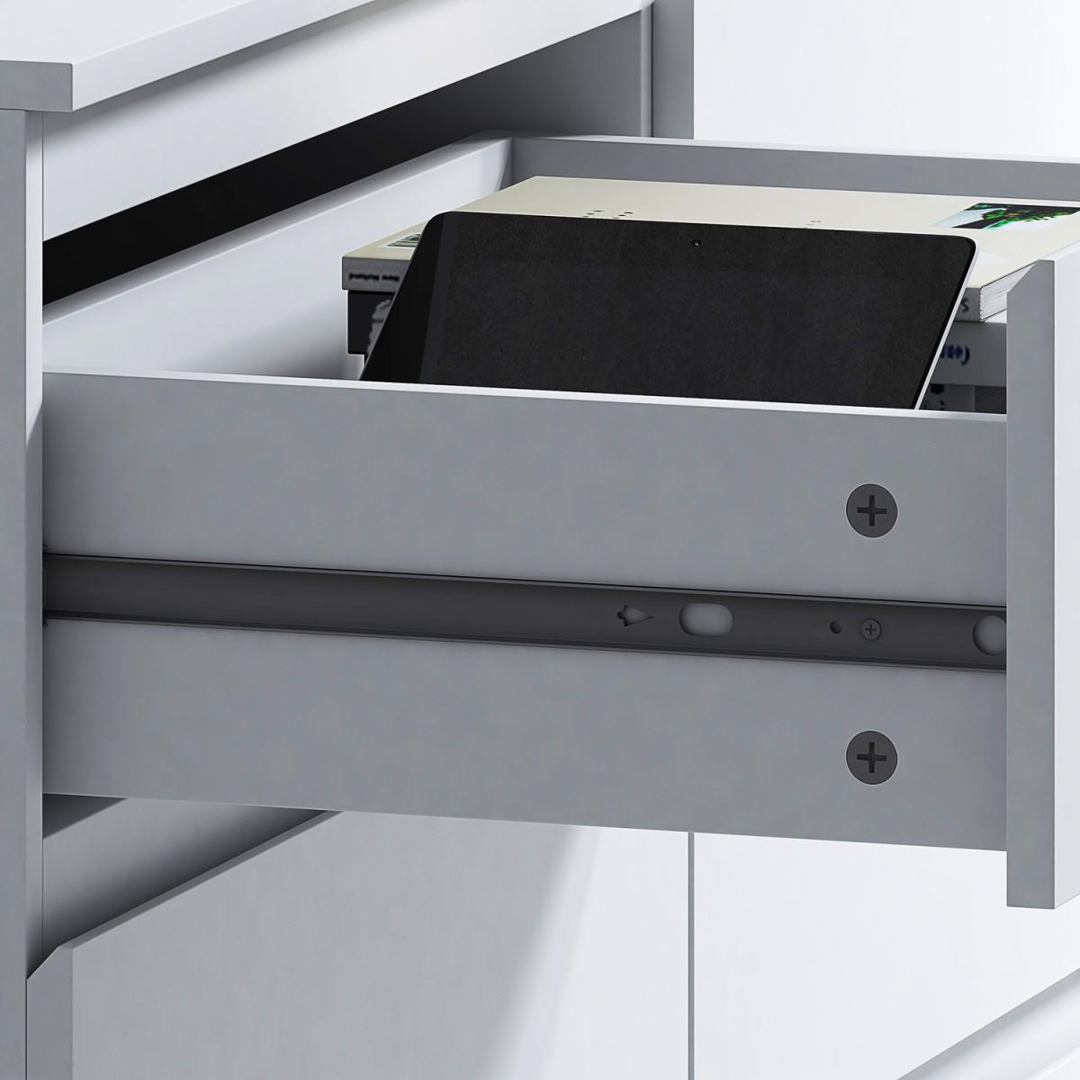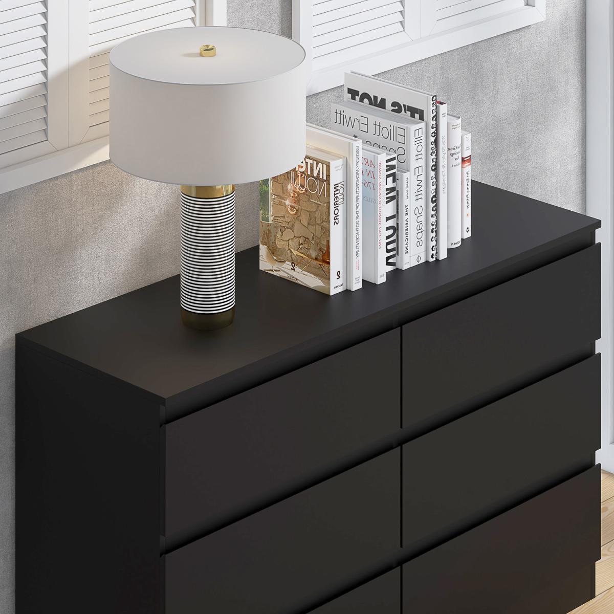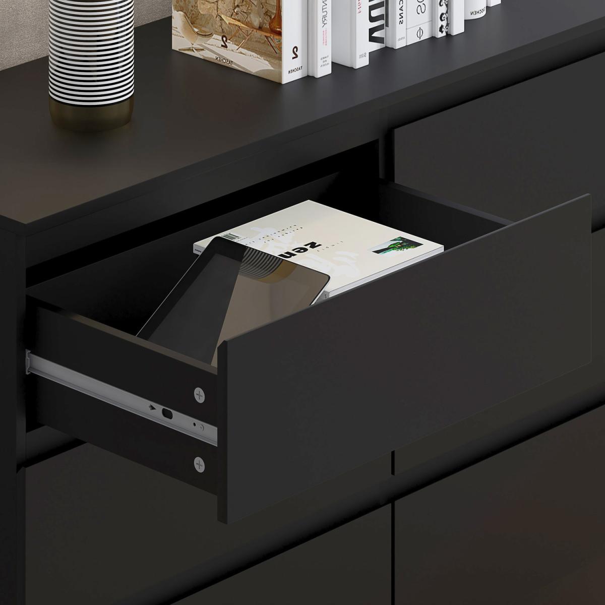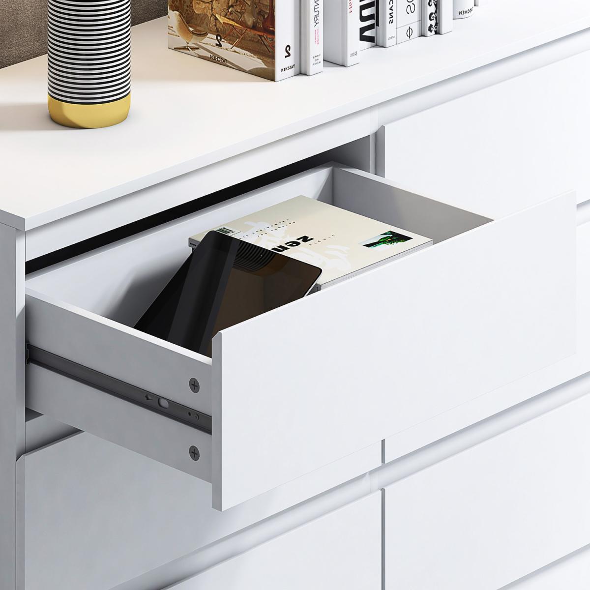 Featuring centralised drawer runners, this chest maximizes storage space by providing extra room for your belongings. The recessed angled chamfered drawer fronts ensure easy access, allowing you to effortlessly retrieve and organize your items. The smooth and quiet drawer runners guarantee a seamless experience, while the largest storage space per drawer available ensures that you can store a variety of items, from clothing to accessories. Crafted with durability in mind, this chest is made from a strong and durable MDF with a melamine coating. Making it scratch and UV resistant, ensuring its long-lasting beauty. The matt drawer fronts, paired with a matt frame, create a striking visual appeal that enhances any interior decor. For your convenience, the chest is delivered flat packed, ensuring fast and easy delivery.