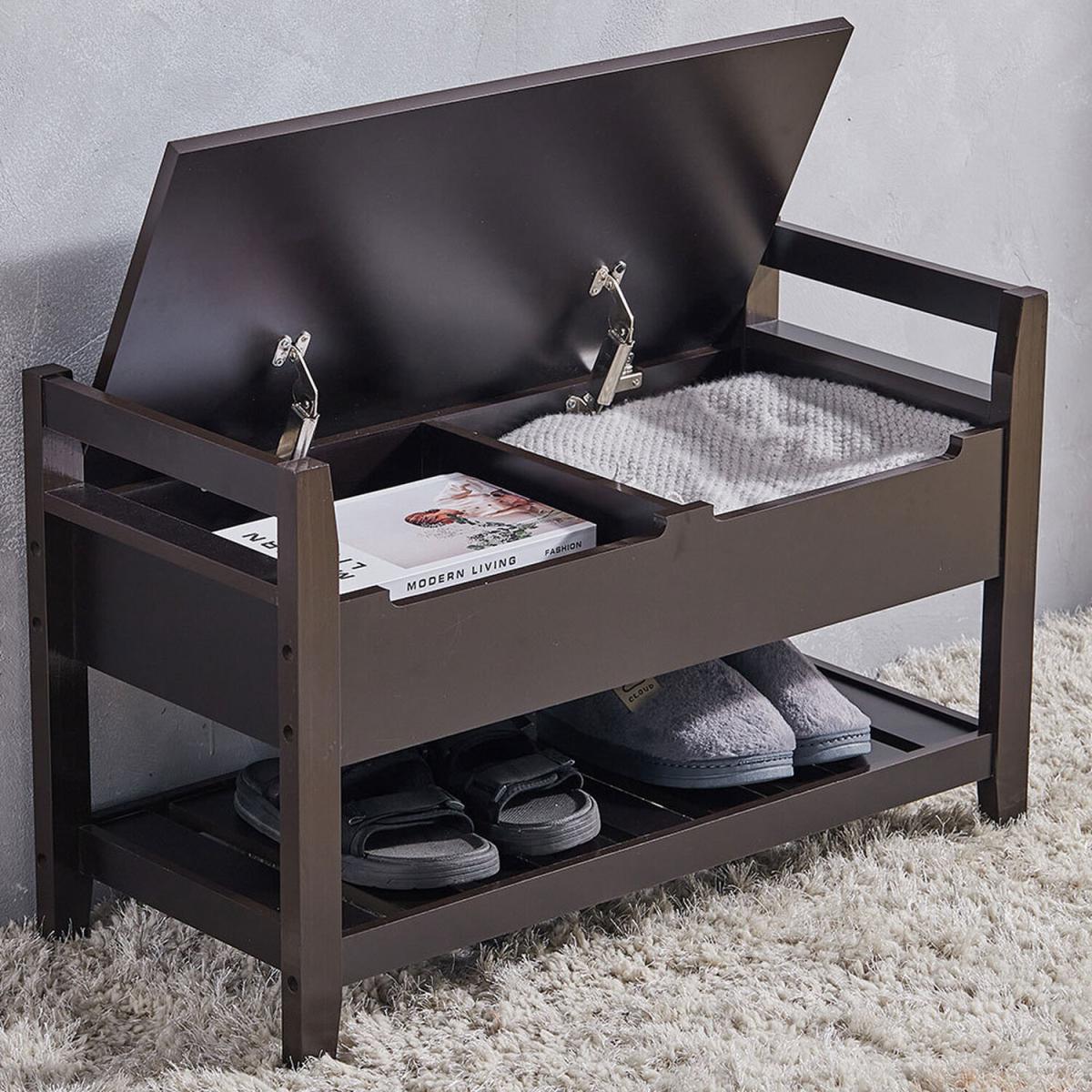 Storage Bench with Shoes Rack - Dark Coffee