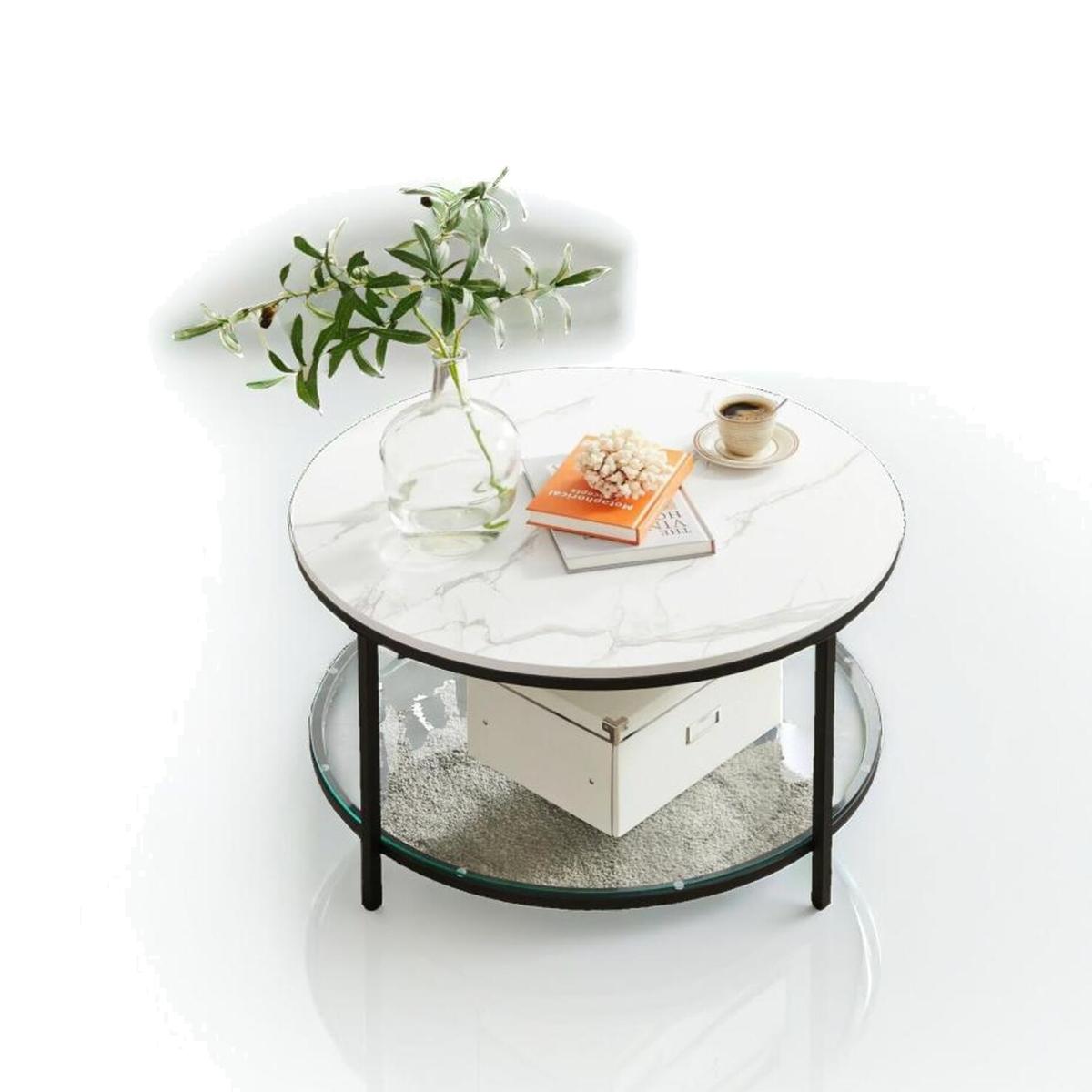 This minimalist modern coffee table is a stunning addition to any living space, featuring a marble white tabletop, a bright tempered glass shelf, and sleek black steel legs that blend together in perfect harmony. The sophisticated design is both stylish and practical, elevating your home's aesthetic while offering functional storage. Crafted with durability in mind, the table's thick top, tempered glass shelf, and robust steel legs ensure maximum stability. The widened tops of the legs add extra sturdiness, making this coffee table a reliable piece for everyday use. Assembly is made easy with clearly labeled parts and simple instructions, so you'll have your new coffee table set up in no time, even if you're not a DIY expert.