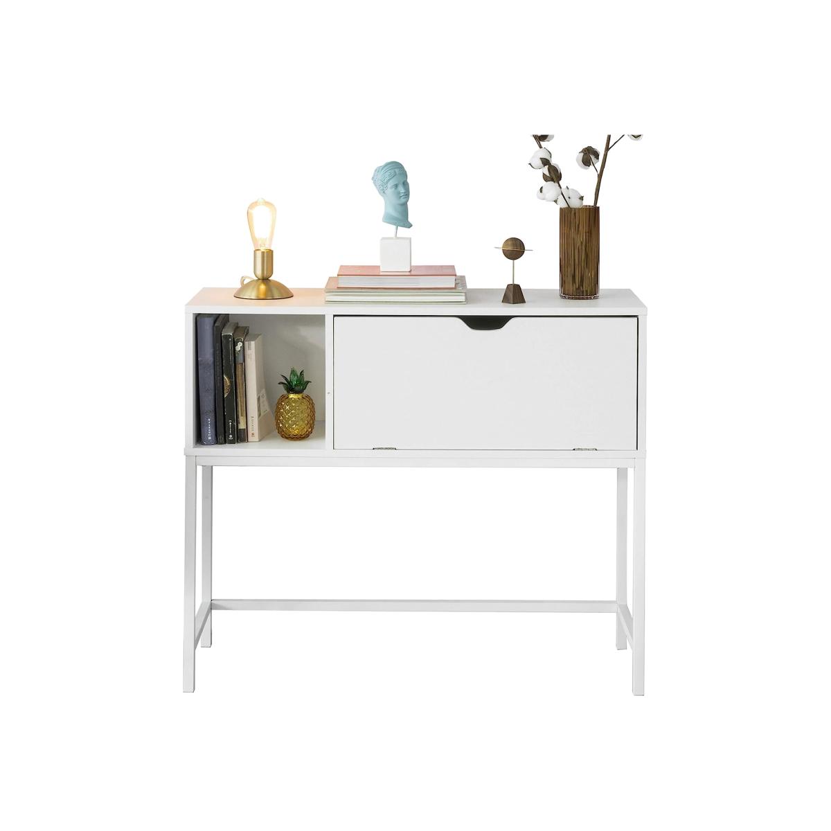 The sleek narrow lines of this entryway wall table make it the perfect space saving storage display solution for any apartment, home or office. A diverse and contemporary product, would be suitable for a variety of locations, like hallway, living room and office. With a cabinet and an open shelf, it offers a very useful and practical storage system. Console table attractive modern and features superior durability and stability.