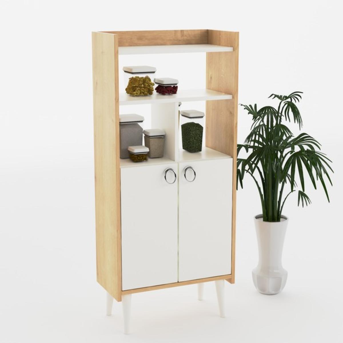 I love this storage display cabinet for its versatile blend of oak and white finishes, which makes it adaptable to both modern and contemporary interiors. It works particularly well in living rooms, kitchens, or even home offices where you want to showcase decorative pieces or discreetly store essentials. Styling tips include balancing the displayed items with a mix of ceramics, books, and greenery for an inviting look. The closed cabinet at the bottom provides practical storage, keeping clutter out of sight, while the open shelves are perfect for highlighting favourite objects. Its clean, simple design ensures it complements a range of colour schemes and interior styles without overwhelming the space.