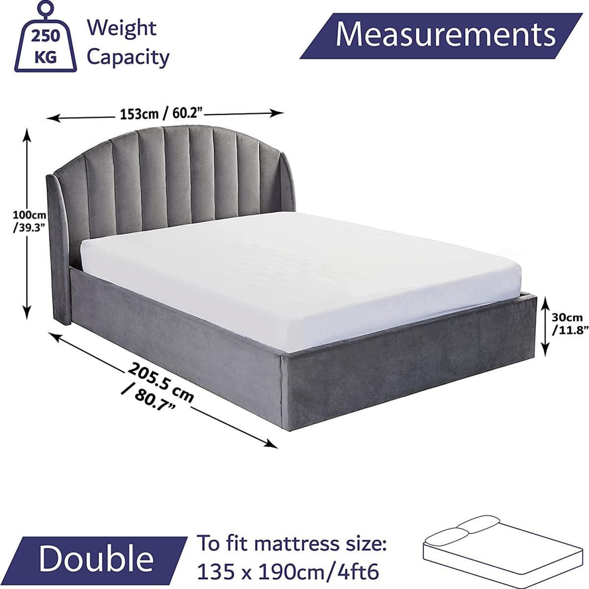 Storage Ottoman Double Bed & Mattress - Curved Plush Winged Headboard with Brushed Velvet - Grey - Gas-Assisted Lift
