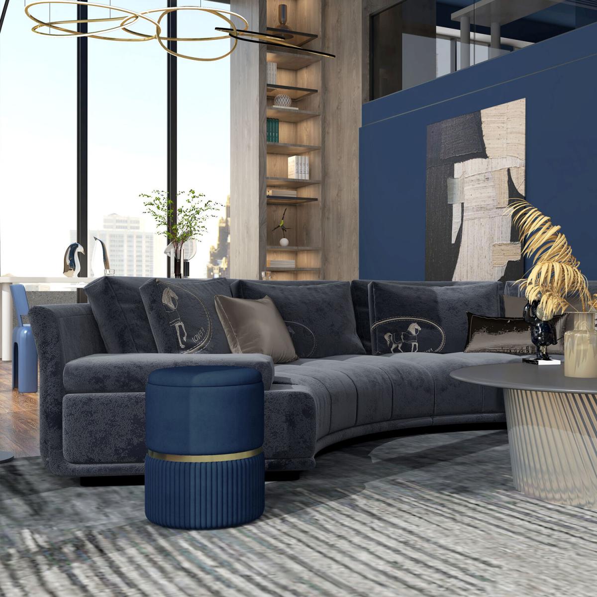 Storage Pouffe Round Foot Stool with Padded Seat - Dark Blue